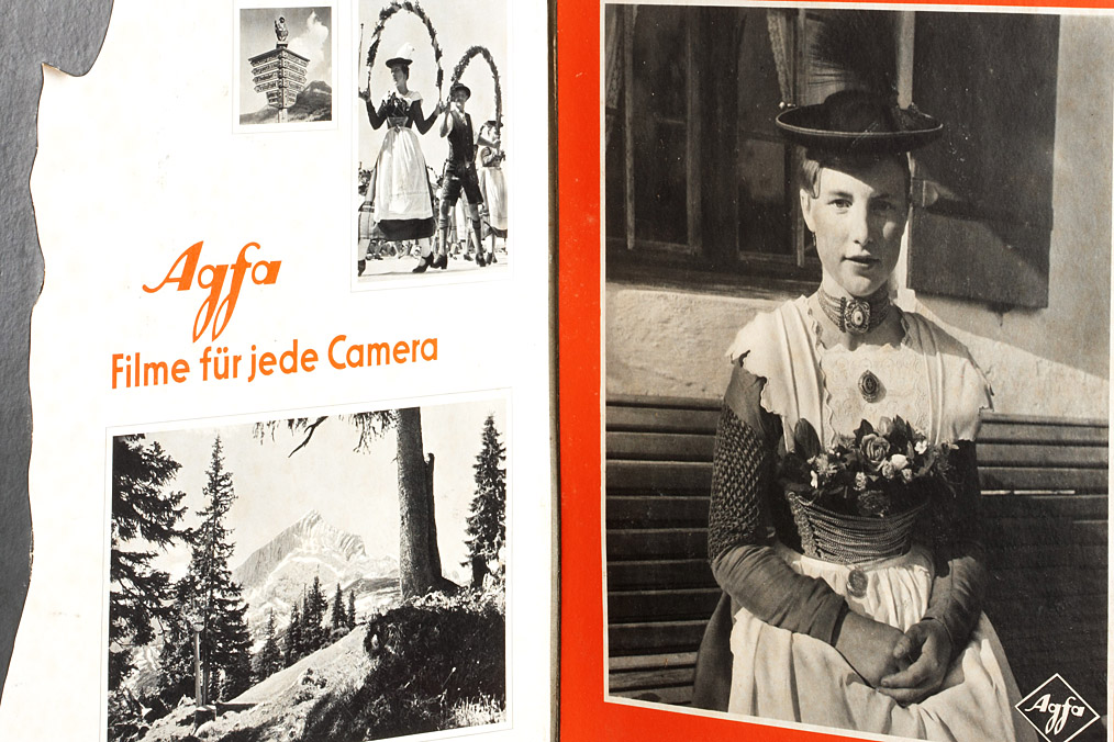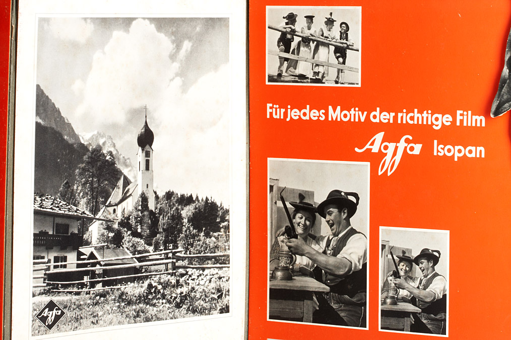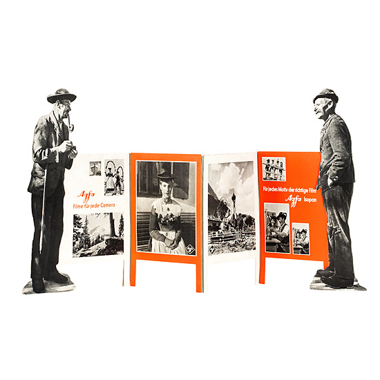 three dimensional advertising stand for Agfa cameras and film, 70cm high, four-sided Para vent like shape, made of cardboard. A wonderful and highly decorative stand in good condition!