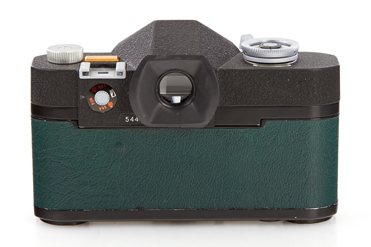 very rare Alpa in black finish with original green leather covering (only around 50 of these cameras were made from 1969 to 1971), black top housing, in mint and working condition, with mint Macro-Switar 1.9/50mm no.1104047, cap