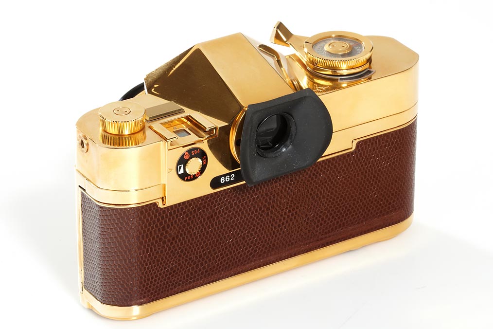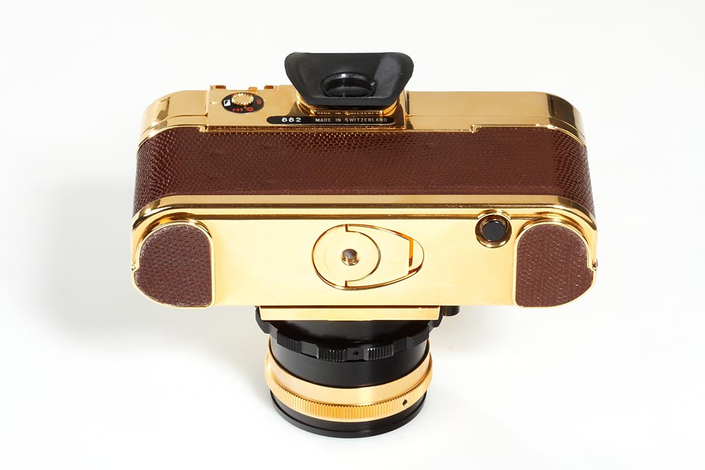 18 carat gold plated edition 71206 OR/GOLD with Kern-Macro-Switar 1.9/50mm no.1114722, cap, certificate, guarantee, papers, wooden presentations box, maker's box