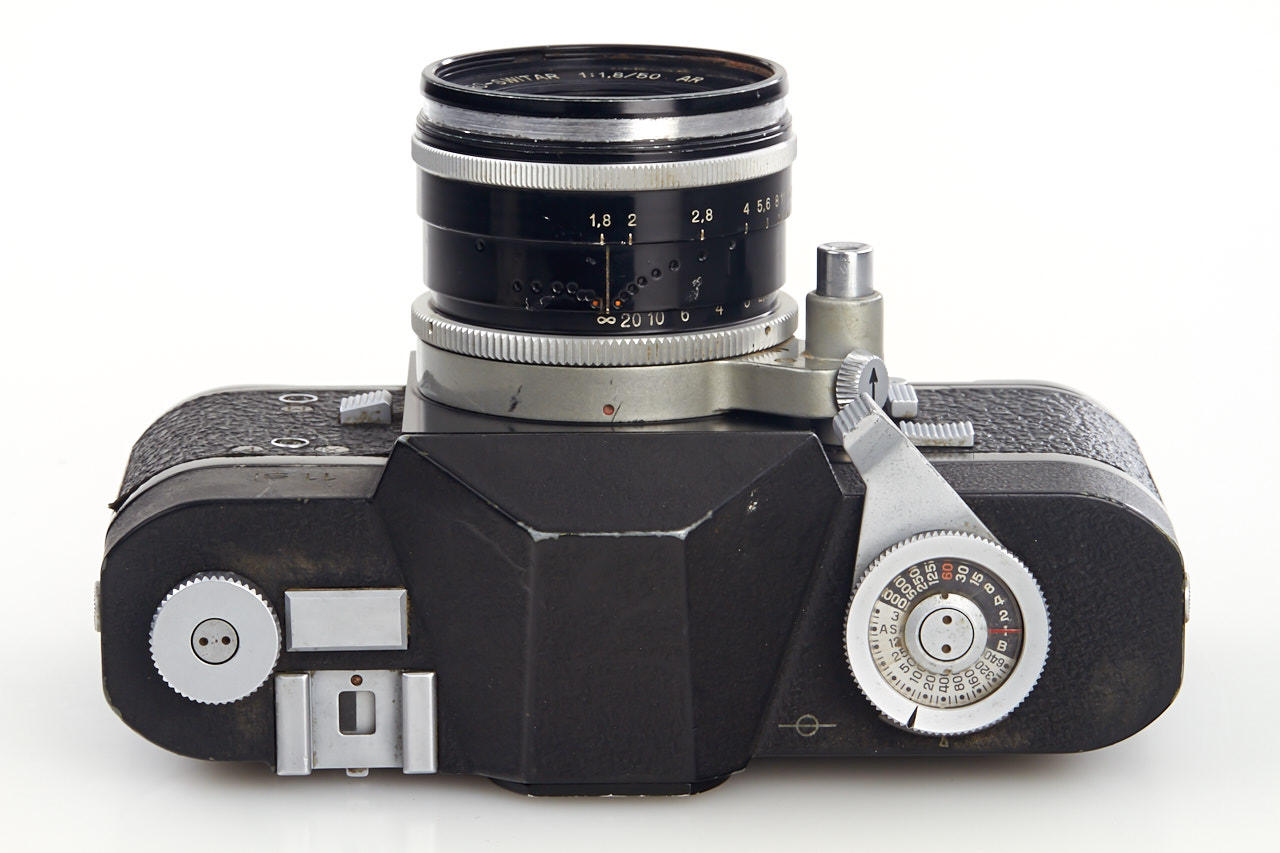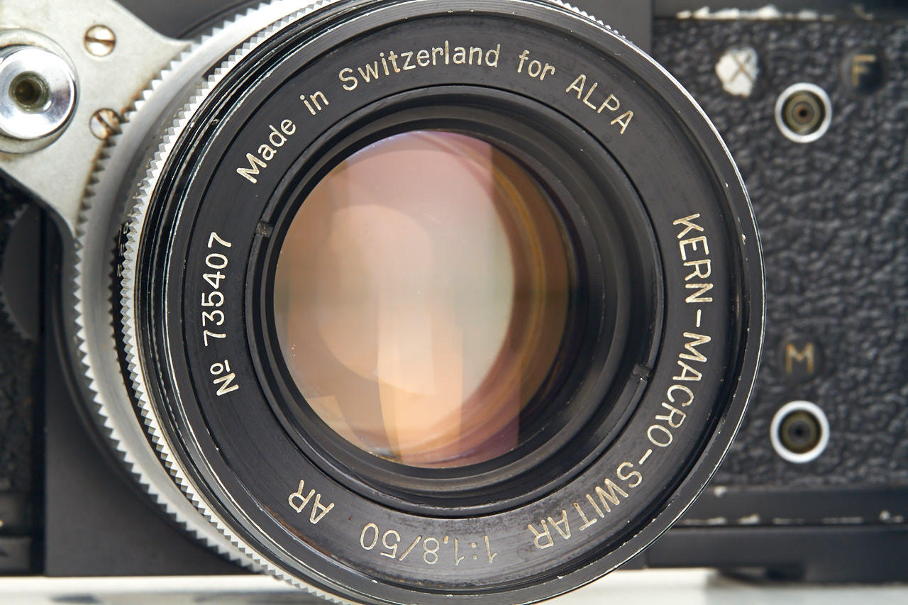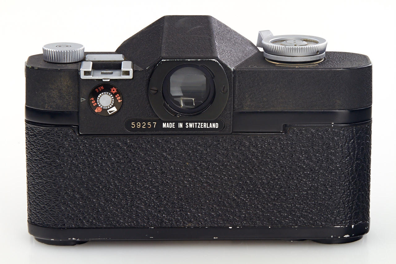 user camera in good working condition, Kern-Macro-Switar 1.9/50mm no.735407 (cleaning marks on front element), original hood, incomplete everready case