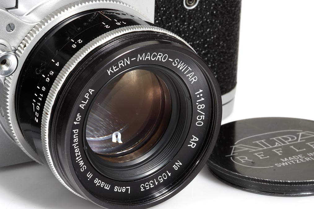 near mint chrome camera, with perfect Kern Macro-Switar 1.8/50mm no.1051353 (clean lenses, filter, cap)