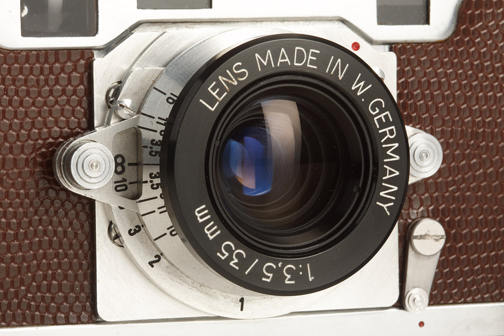 extremely rare original de Luxe version with lizard skin covering, one of 7 cameras produced, with matching Rodenstock 3.5/35mm lens no.0068 (the lens war only produced for this camera), in good working order