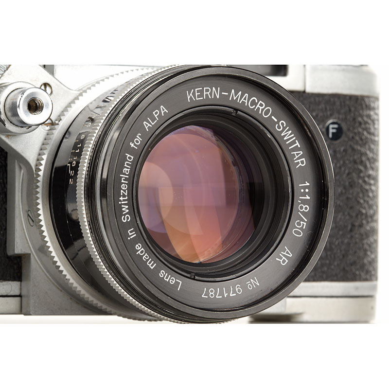 heavy used body with good Kern Macro-Switar AR 1.8/50mm no.971787, clean lenses, filter and cap