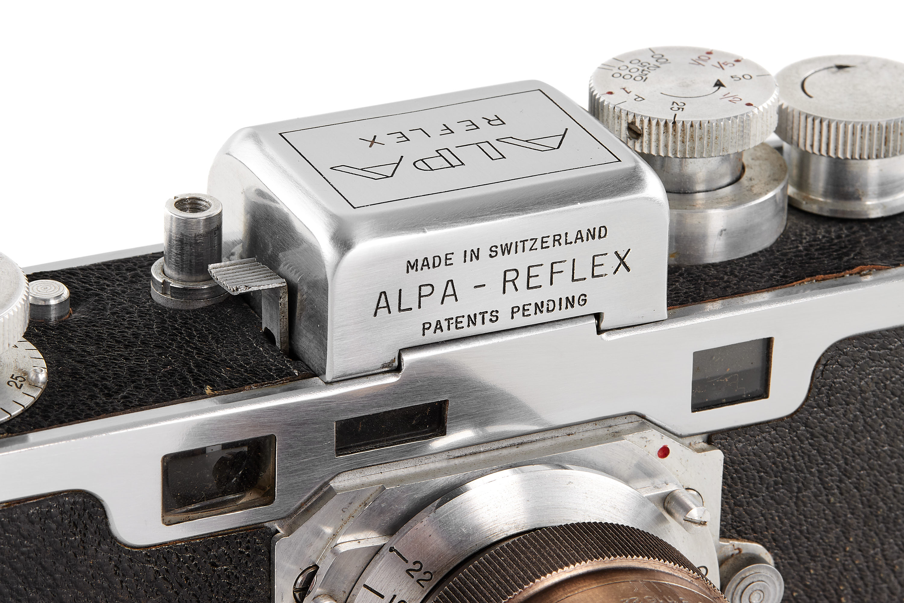 Early body in almost mint condition and working order, with rare matching fast Angénieux Type S1 Alitar 1.8/50mm no.78.043 in original Alpa mount (ca. only 1700 units produced), very good optics only showing light cleaning marks.