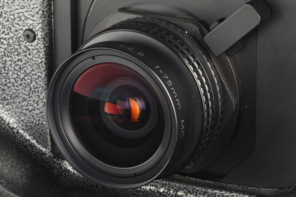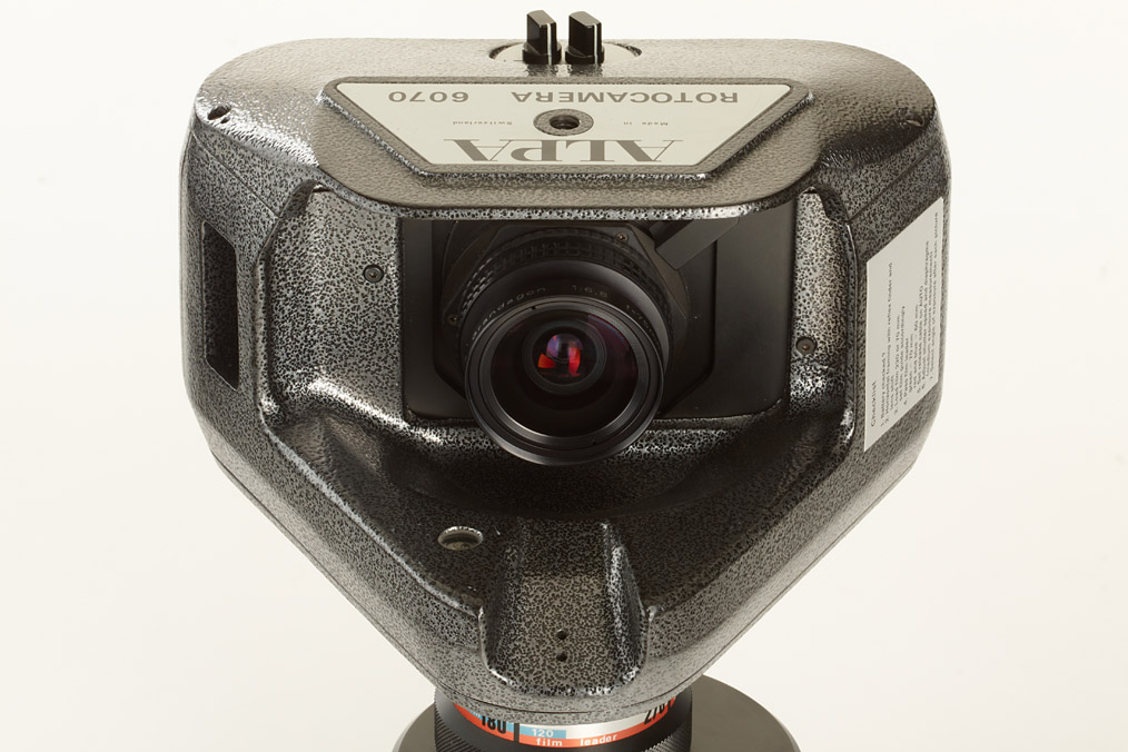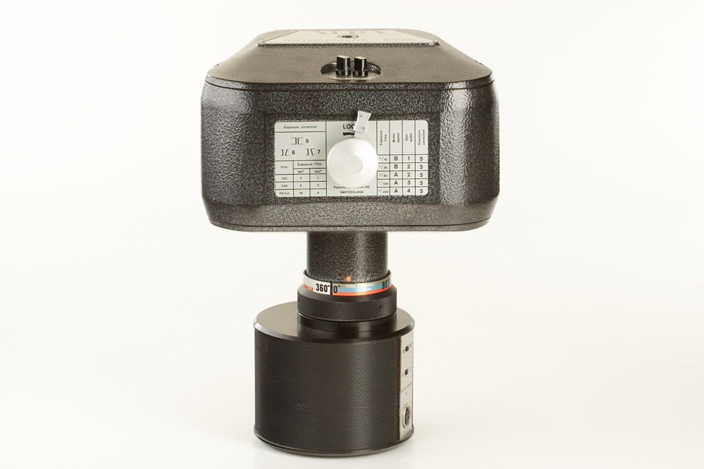 for up to 360° exposures (6 x 47.5cm) on 120, 220 and 70mm film, in mint condition and perfect working order, with cable release, custom made accupack (for 10x AA batteries), AC Adapter, cable
