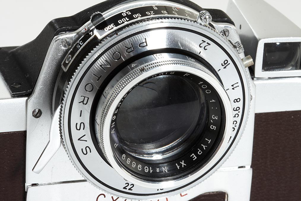 6x9cm viewfinder camera of unique design with very rare Angenieux Type X1 3.5/100mm no.169989 in Prontor-SVS shutter, in perfect working and excellent condition, original case