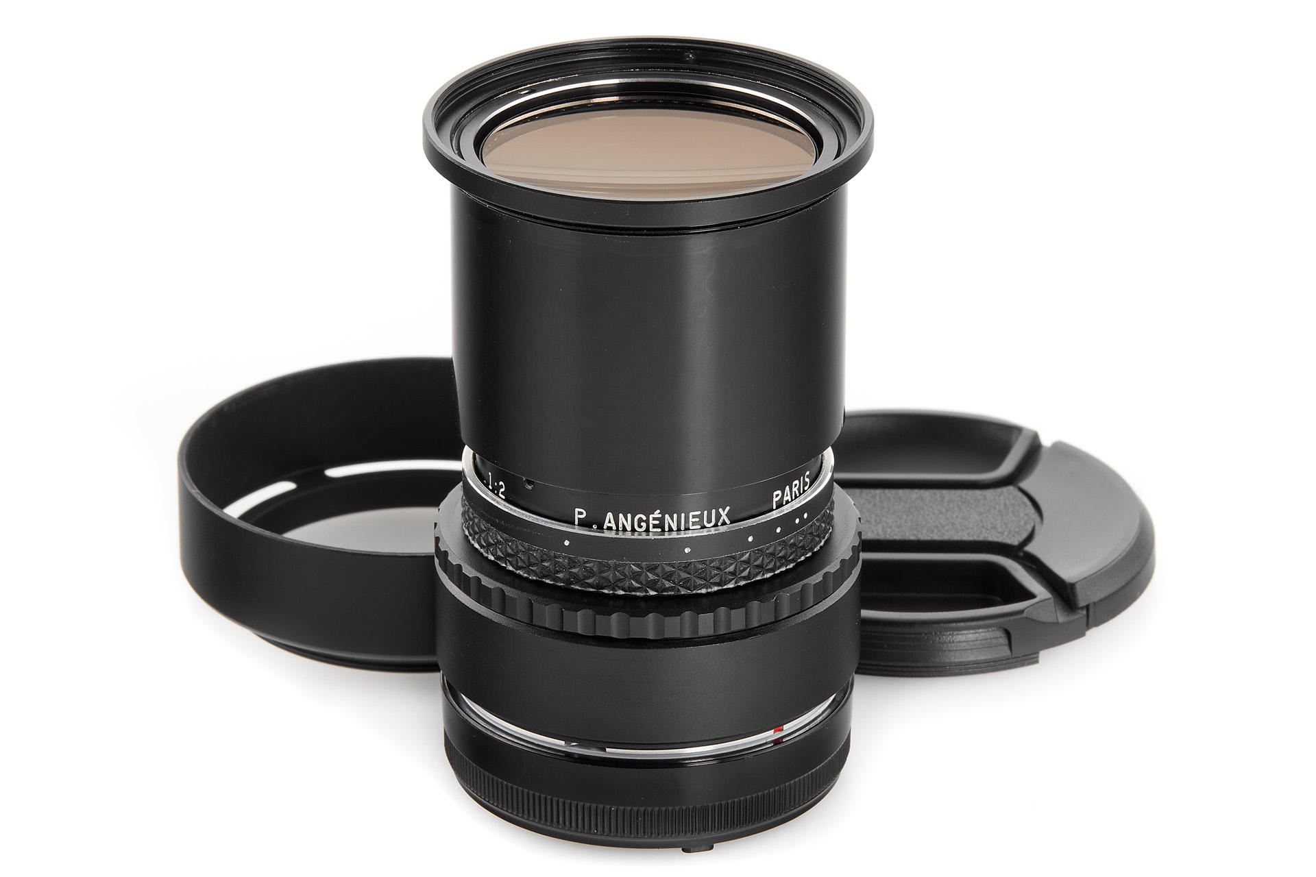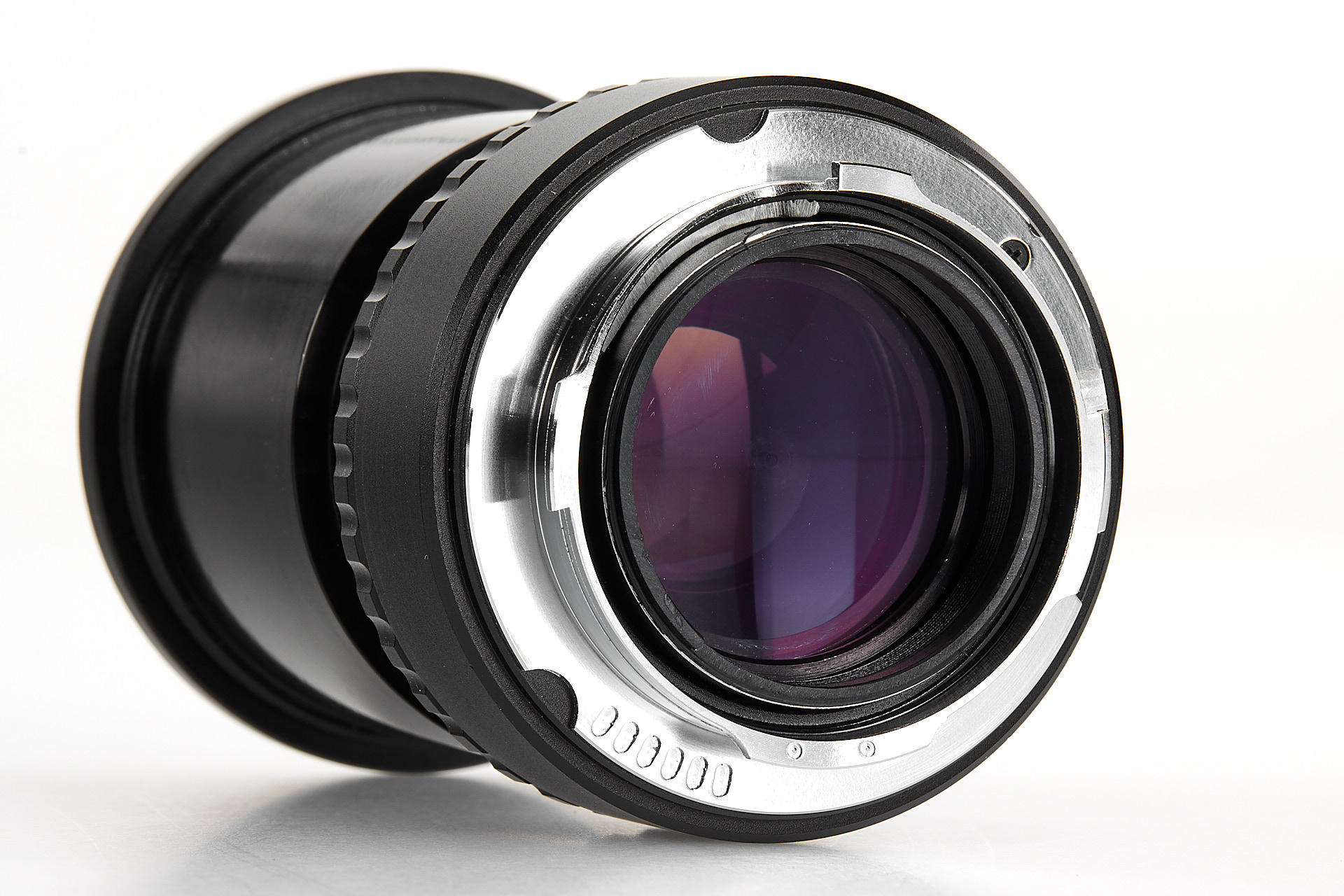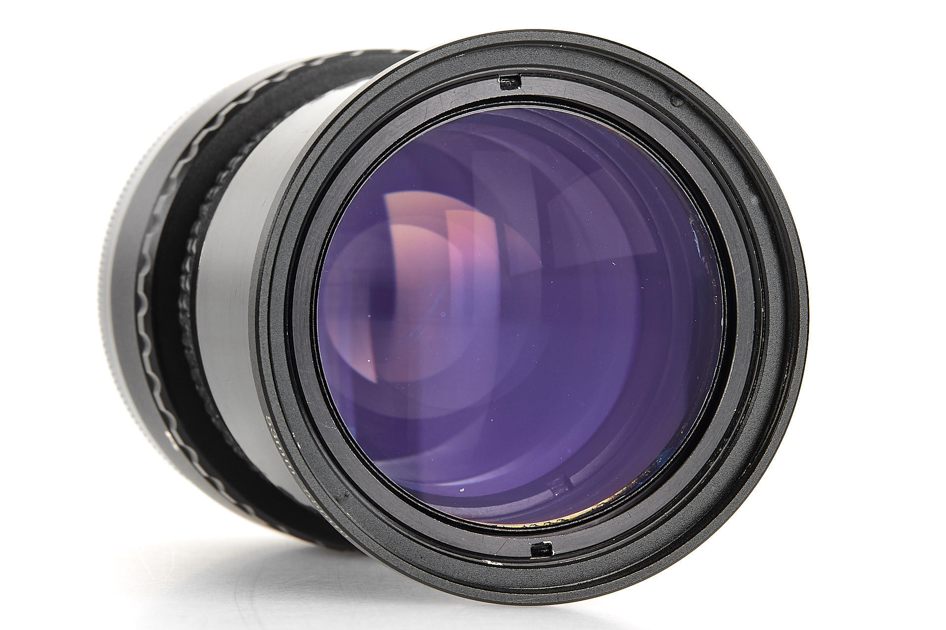 Very interesting fast portrait lens covering full frame with additional engraved numbers or references 62812 and MI557844-A1 (military?), aperture diaphragm added later, with professionally made Leica M adapter, hood and both caps