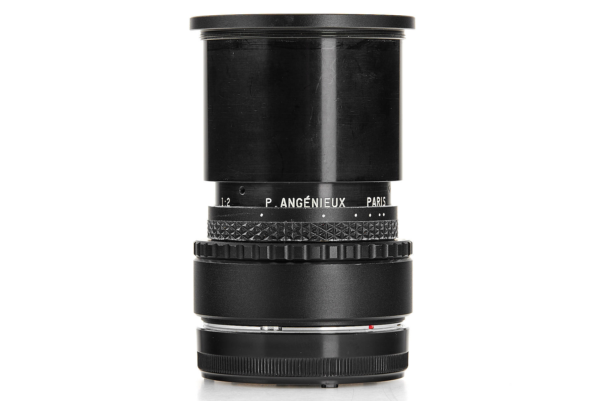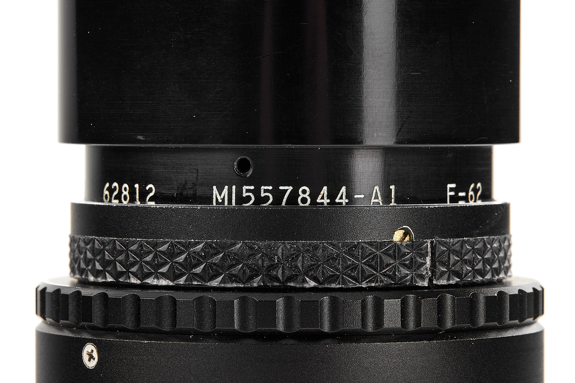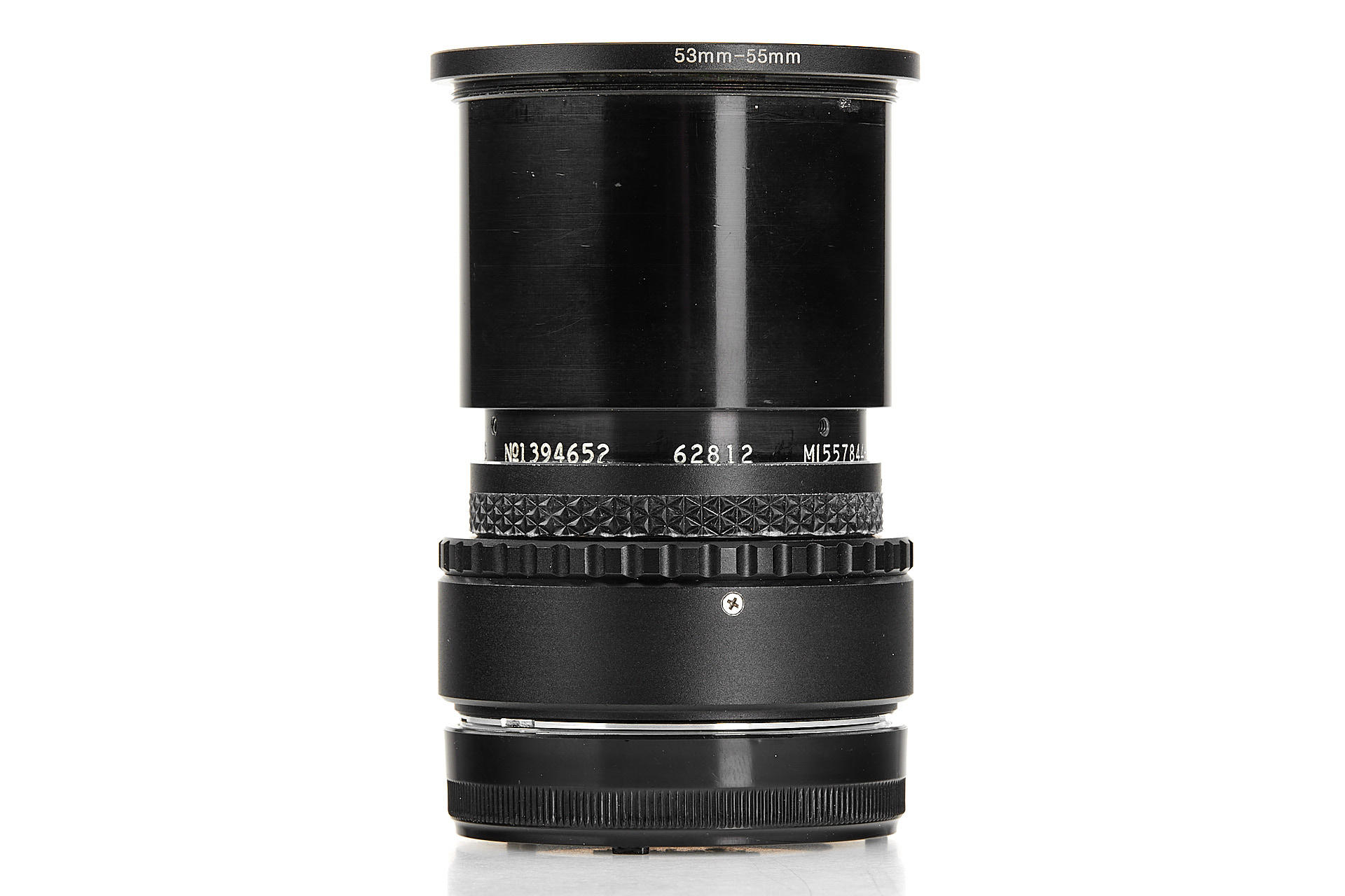 Very interesting fast portrait lens covering full frame with additional engraved numbers or references 62812 and MI557844-A1 (military?), aperture diaphragm added later, with professionally made Leica M adapter, hood and both caps