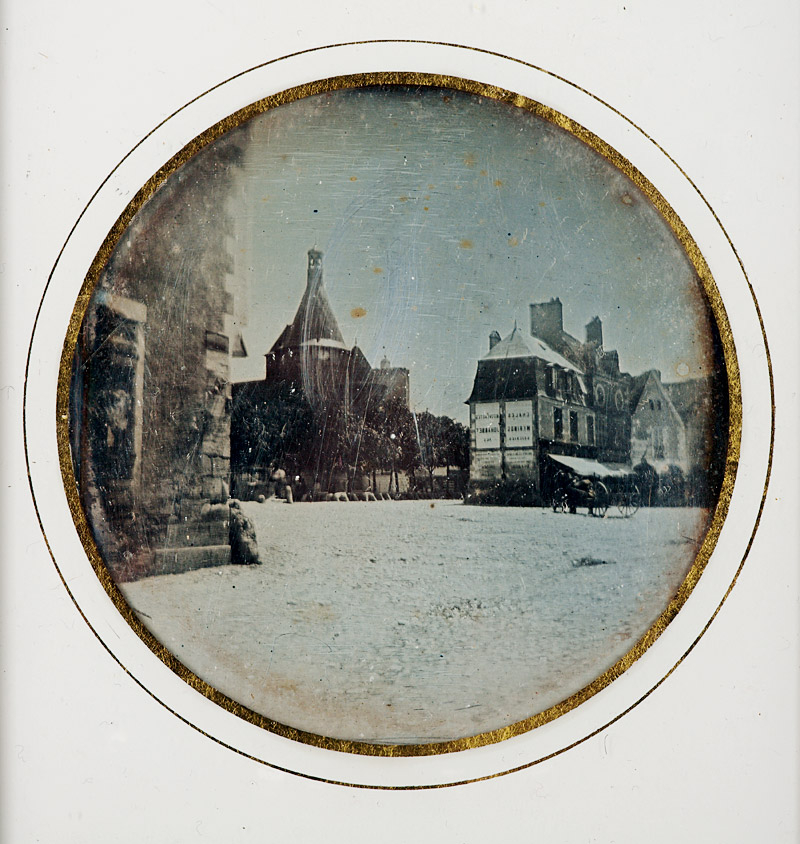 Anonymous French Photographer, using a Gaudin camera, Scene in the French city Issoudun & Portrait study