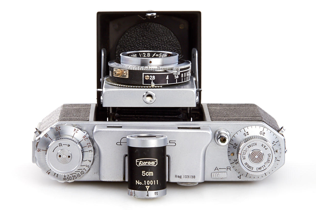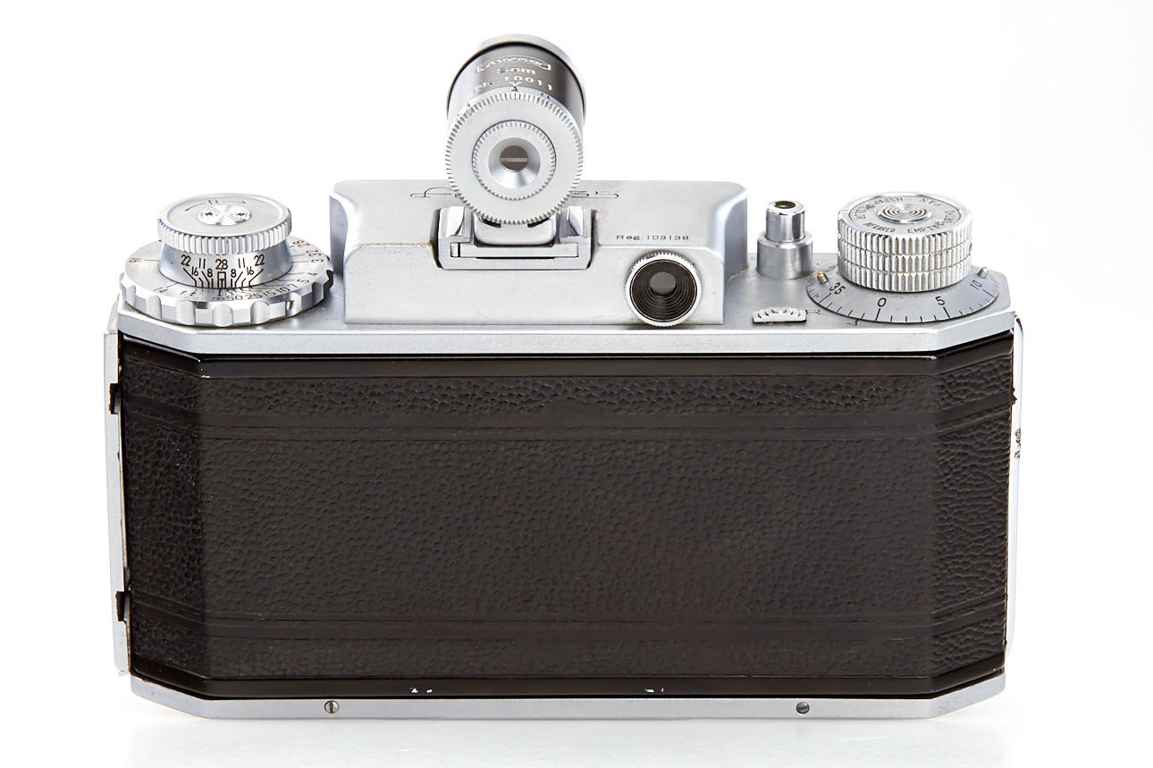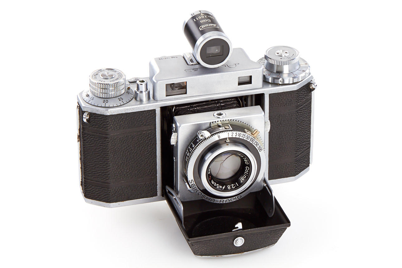 35mm folding-bed rangefinder camera with Colinar 2.8/5cm no.146780, 5cm finder, maker's box - a very rare set in near mint condition