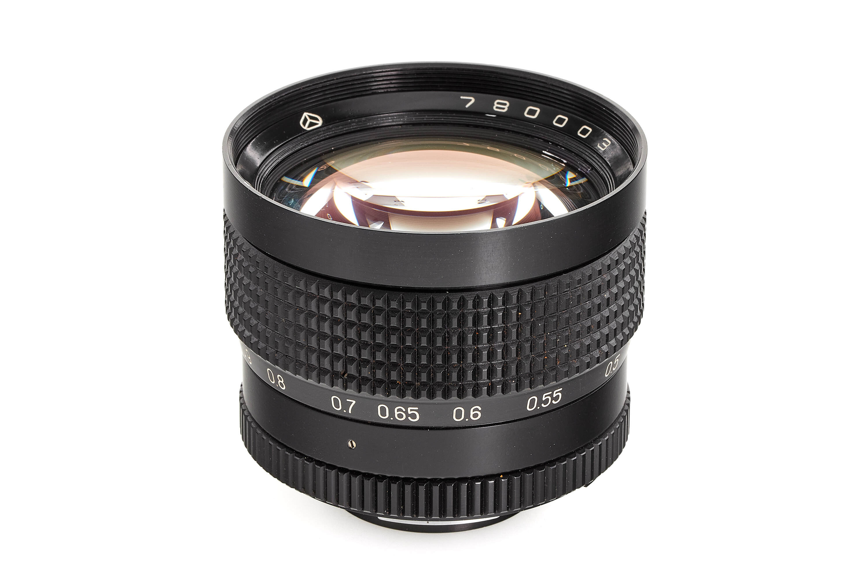 Extremely rare fast lens prototype for the Kiev 17 to Kiev-20 in original Nikon bayonet, it never went into production, 3rd prototype made in 1978, in almost mint condition, good optics only showing a few cleaning marks, with front lens cap and rear protection, a similar lens wearing the no.780007 can be seen on p.220 in J. L. Princelle 'Made in USSR'.