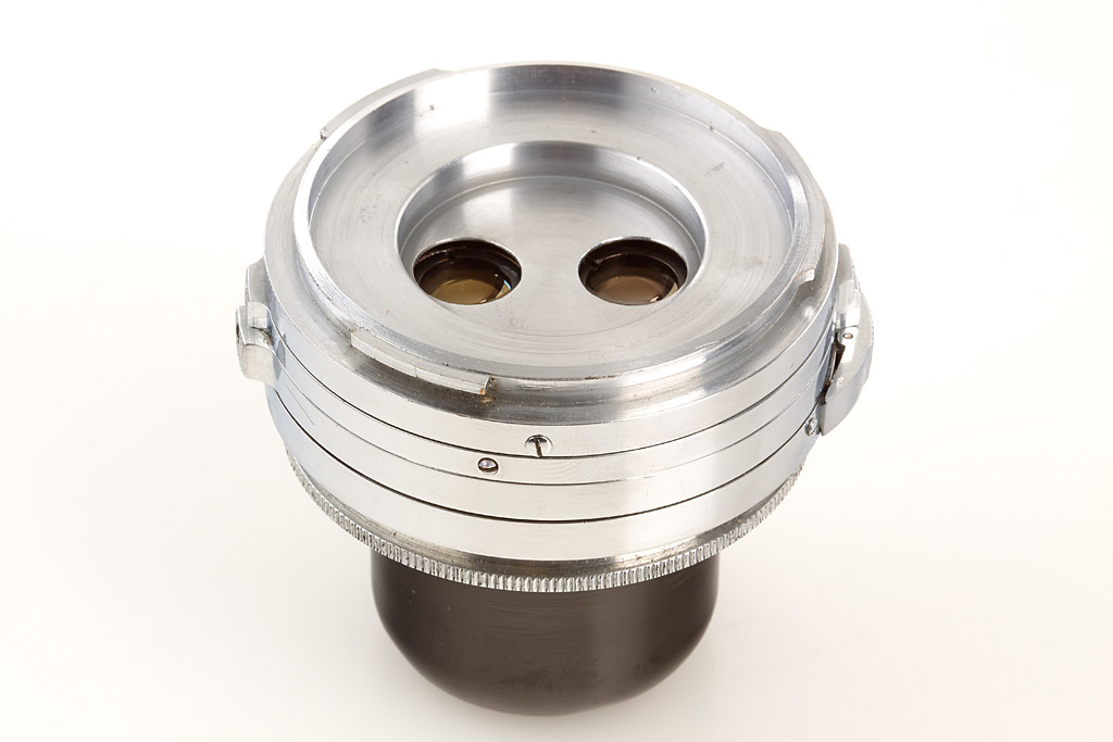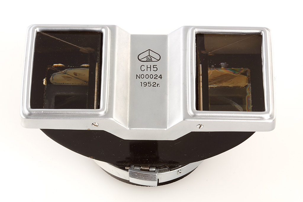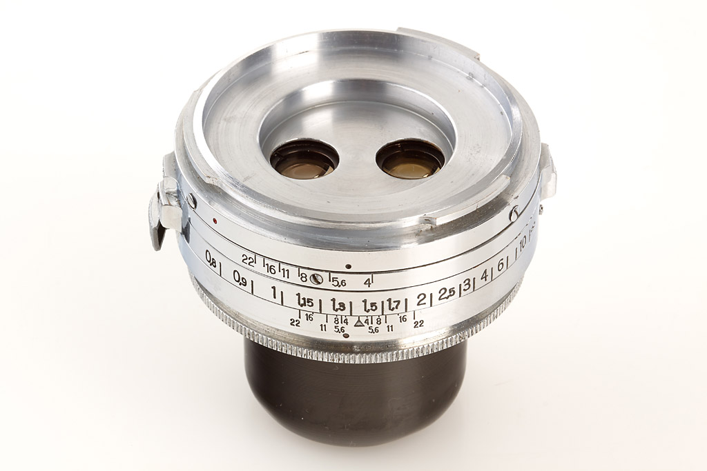 extremely rare stereo outfit in near mint condition with stereo lens (two 4/35mm lenses, rear cap), prism engraved with military Arsenal emblem with hammer and sickle and 'CH5 N00024 1952r.' (rear cap), 3 filters, all in matching outfit case - see Jean Loup Princelle 'The Authentic Guide to Russian and Soviet Cameras', p.213
