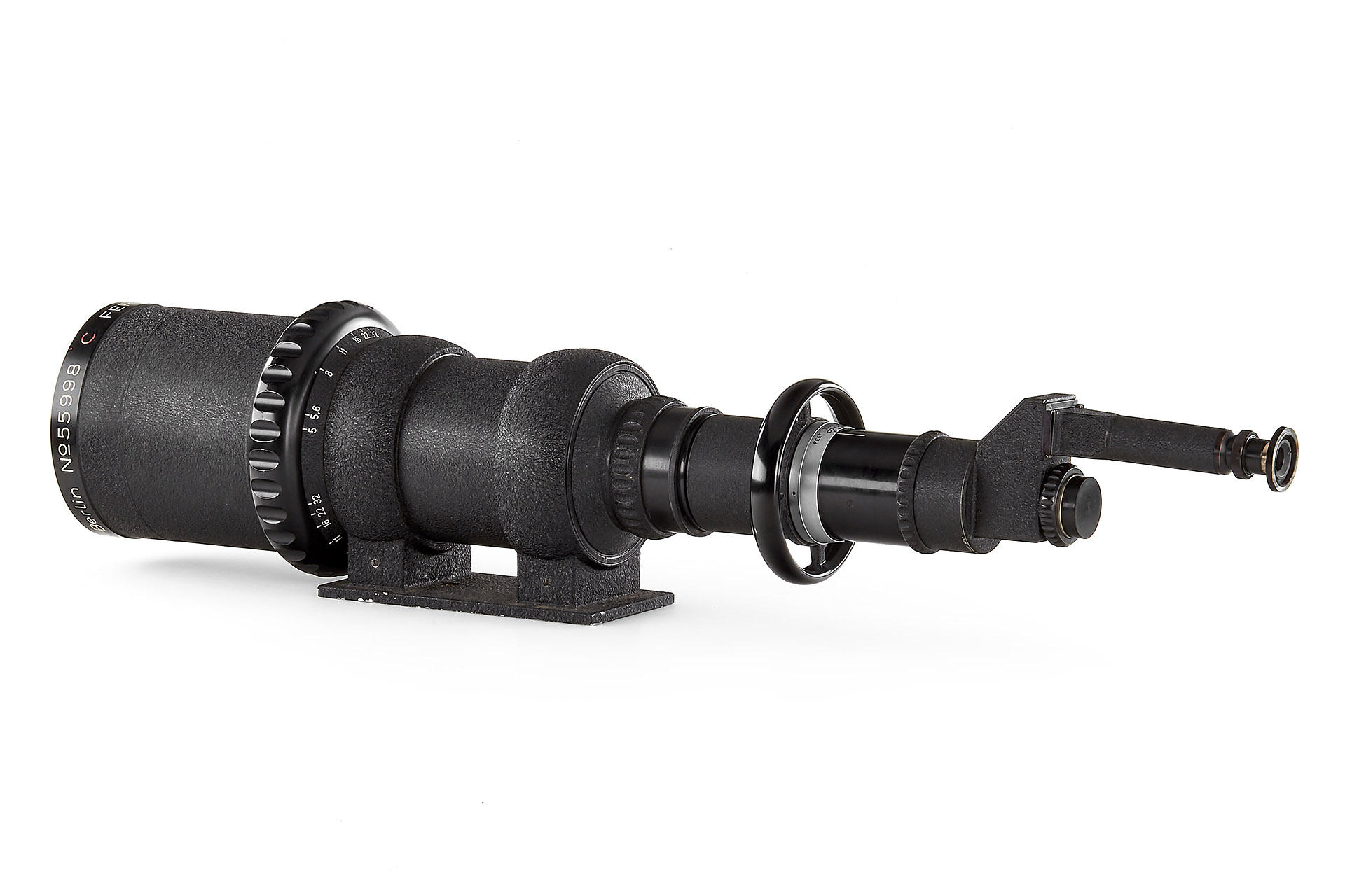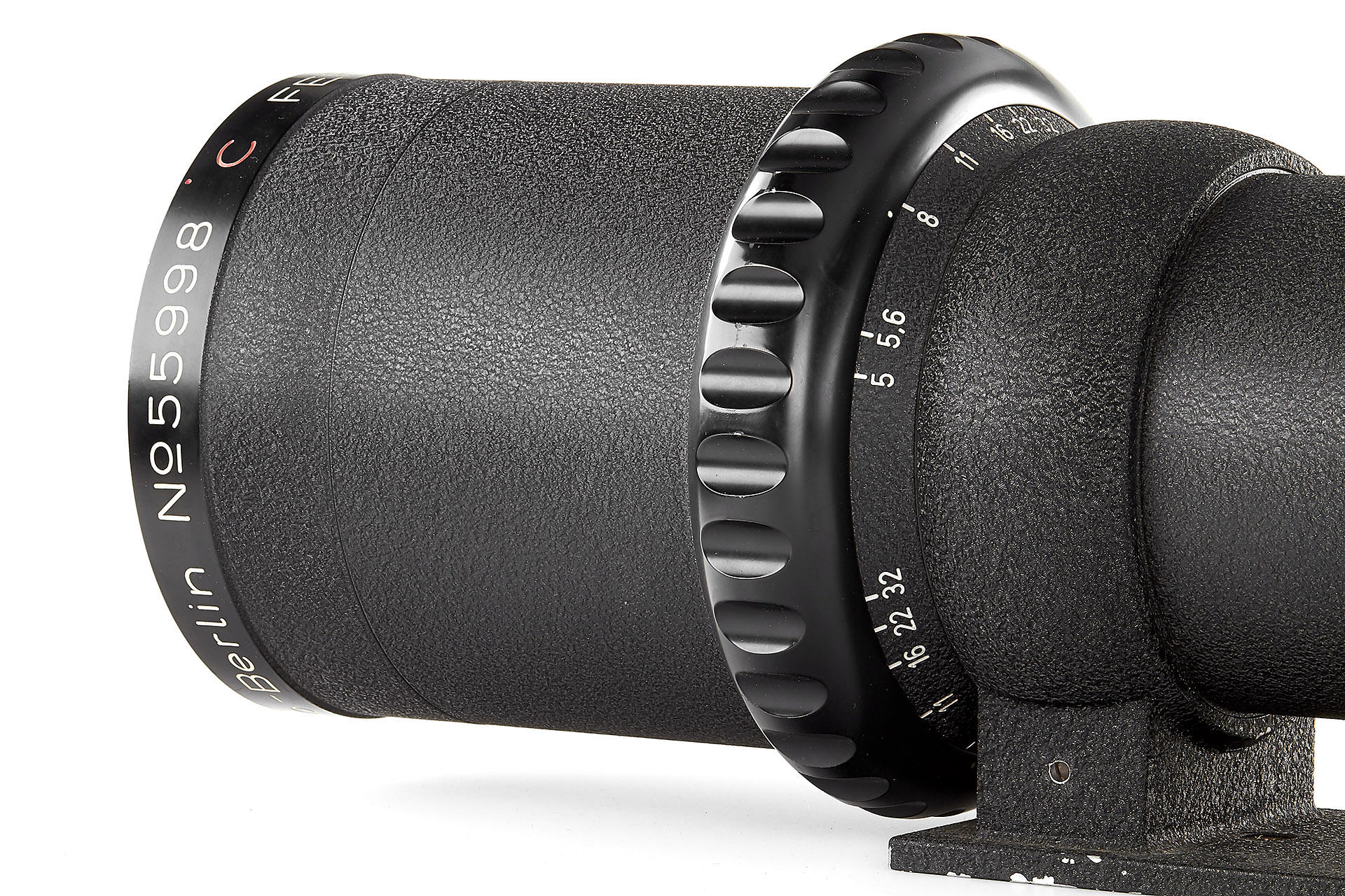 very rare Fernbildlinse in fine condition, with mirror housing Identoskop no. 56010, M39 mount adapter, hood and cable release, all in large metal case