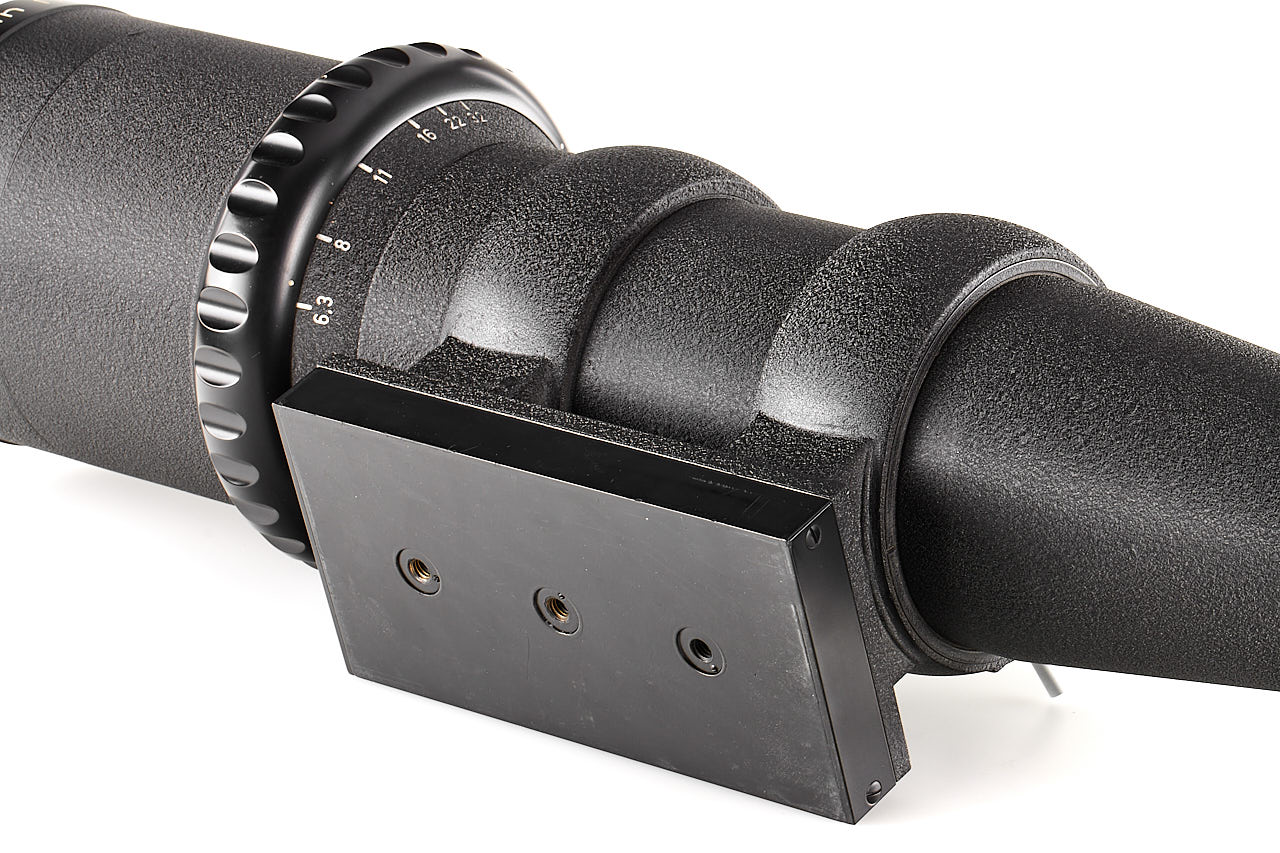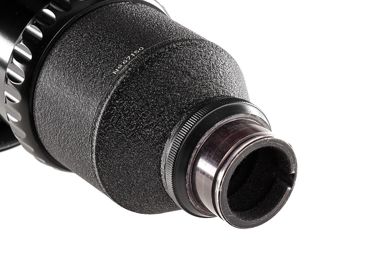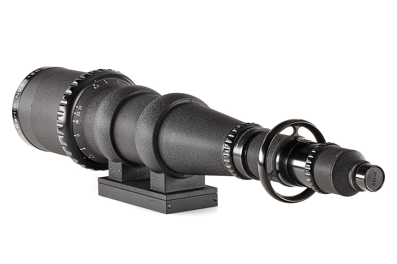 Rare impressive 1000mm tele-lens, very simple design consisting of one achromatic doublet, here in almost mint condition, good lenses with minimal cleaning marks, set including the hood, tripod base and adapter for Arriflex 35mm mount with matching serial numbers, both caps and the original hard case. Please note that due to its very large dimensions, extra expedited delivery costs will be asked.