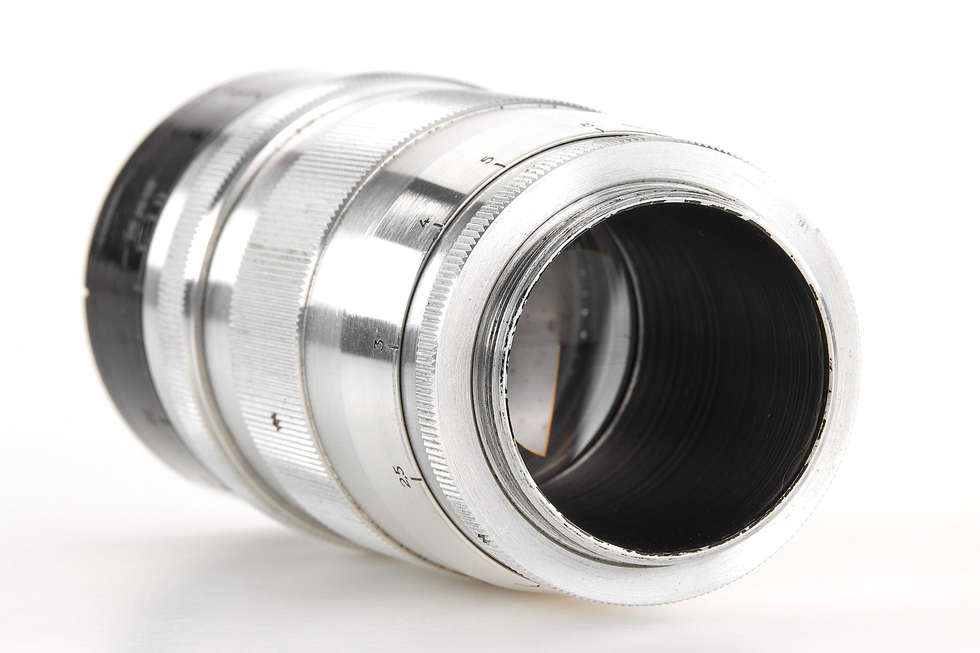 Rare portrait lens in original, uncoupled M39 mount, in very good condition, good optics, with original hood and front lens cap.