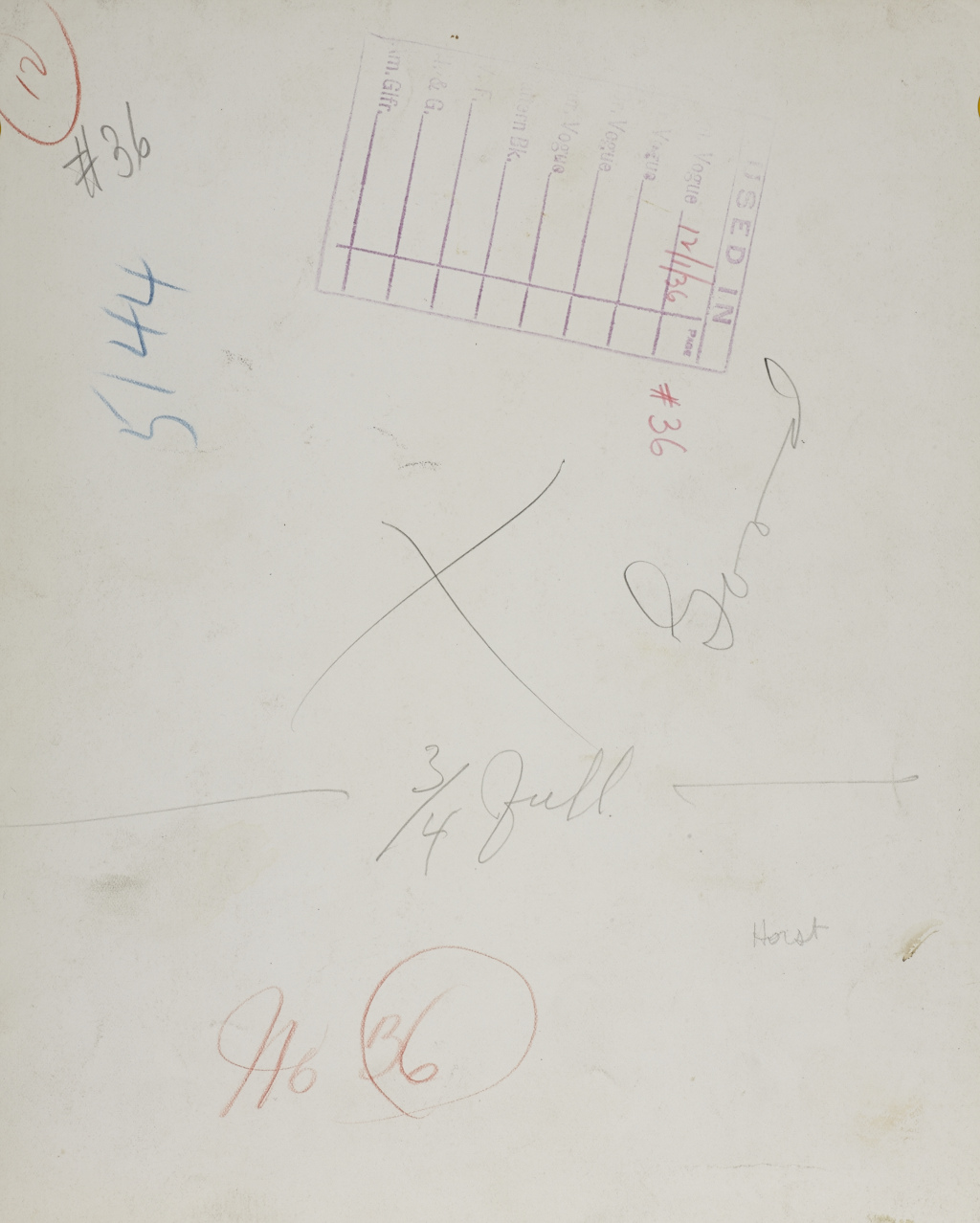 Vintage silver print, contact print 24,5 x 20 cm (9.6 x 7.9 in) Vogue archive stamp (with handwritten date) and diverse notations in pencil on the reverse
