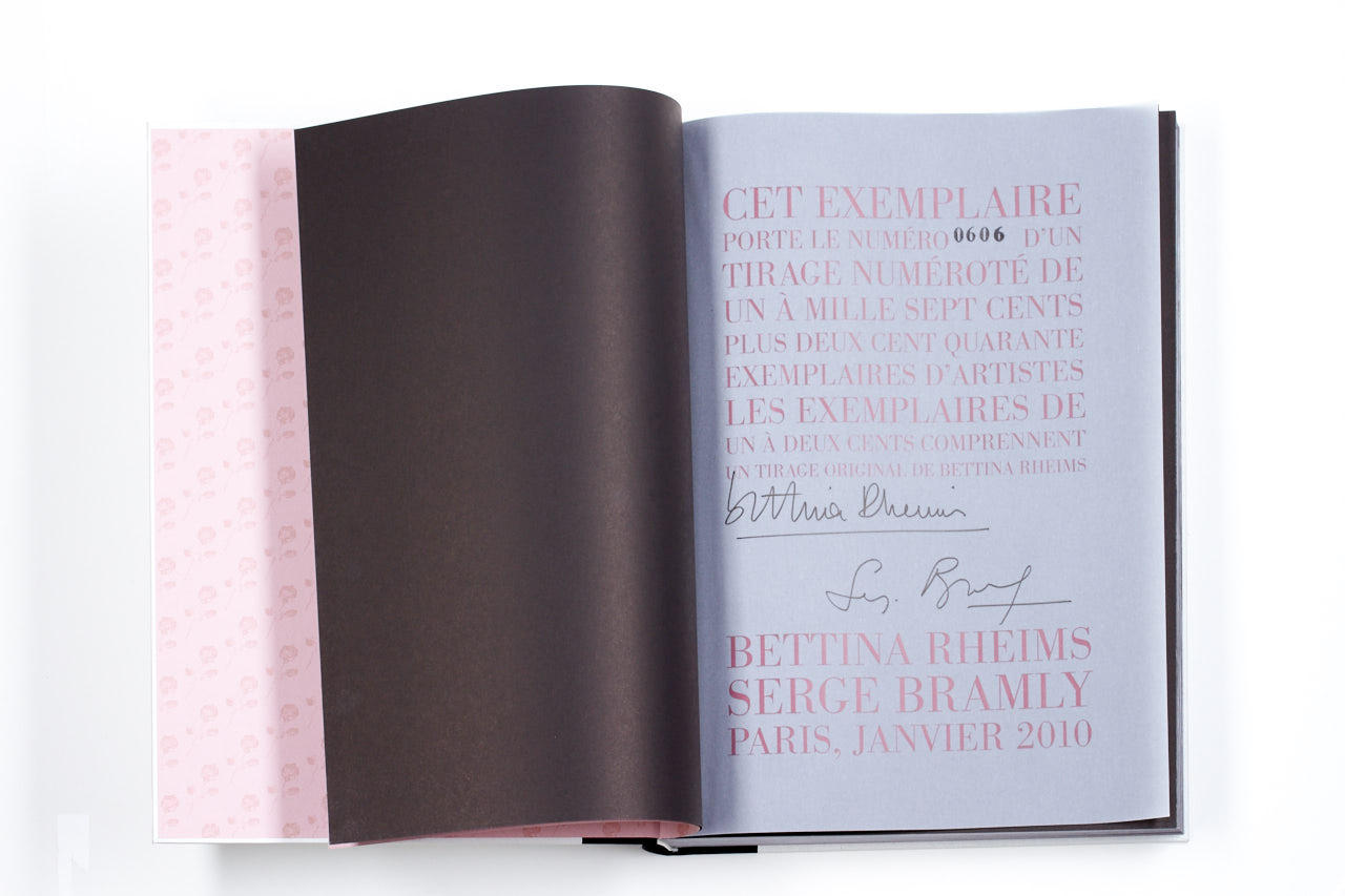 Collector’s Edition of 1,500 copies, numbered and signed by Bettina Rheims and Serge Bramly, edition no. 606, hardcover with booklet, DVD by Serge Bramly and further objects in suitcase, 29 x 40,5 cm, 332 pages