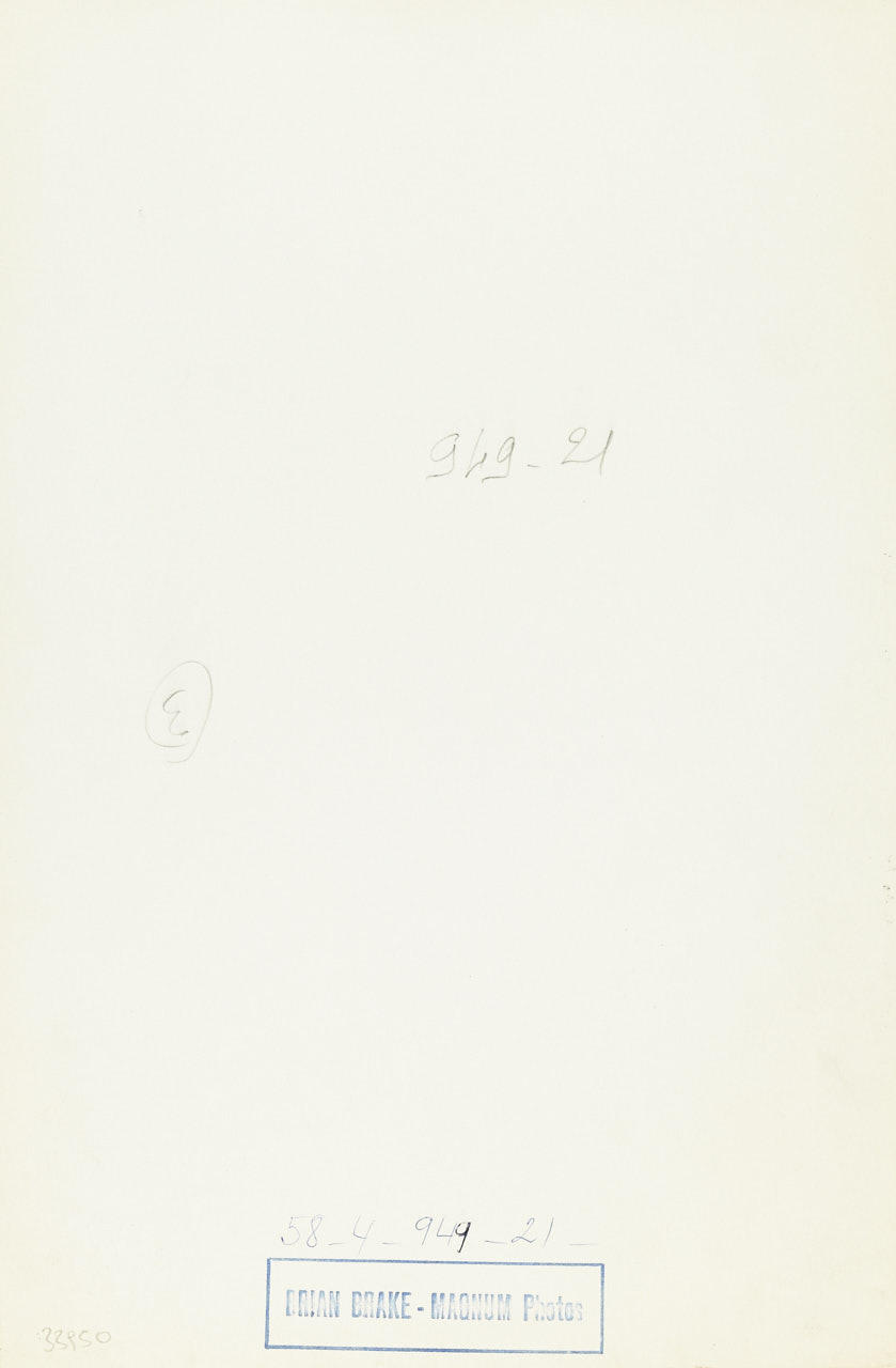 Vintage silver print 29,5 x 19, 4 cm Photographer's agency stamp and various handwritten numerical notations (incl. the neg. no. “58-4-949-21”) in unidentified hands on the reverse
