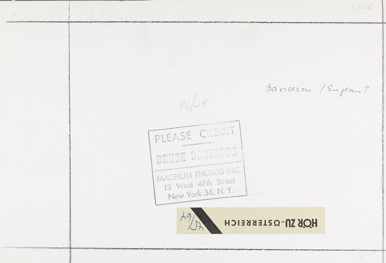 Vintage silver print 18,1 x 26,6 cm Photographer's agency credit stamp and cropping marks in pencil on the reverse LITERATURE Bruce Davidson, England / Scotland 1960, Göttingen 2007. (different cropping)