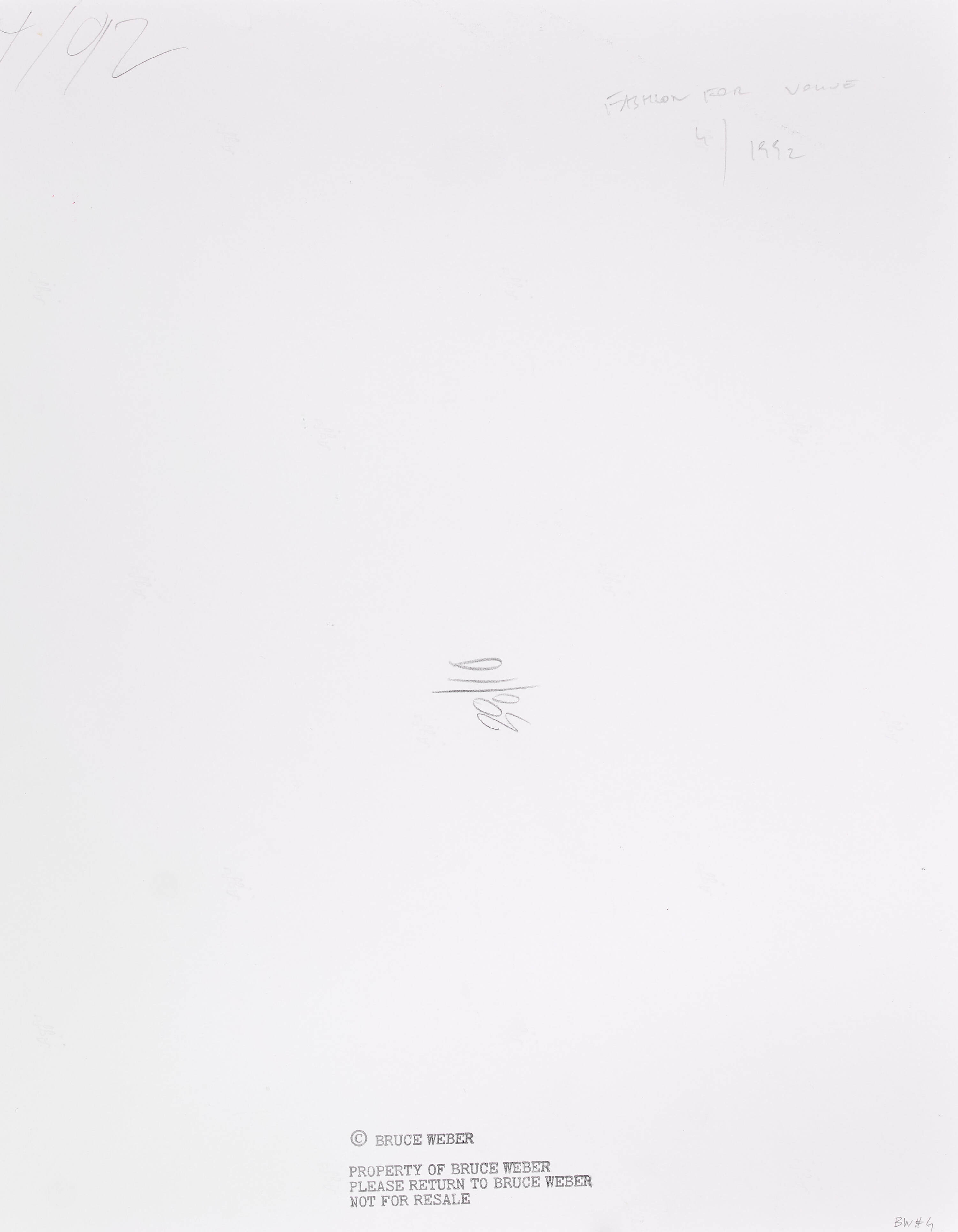 Photographer´s copyright stamp on the reverse, titled "Fashion For Vogue 4/1992" in pencil on the reverse, various numerical notations on the reverse