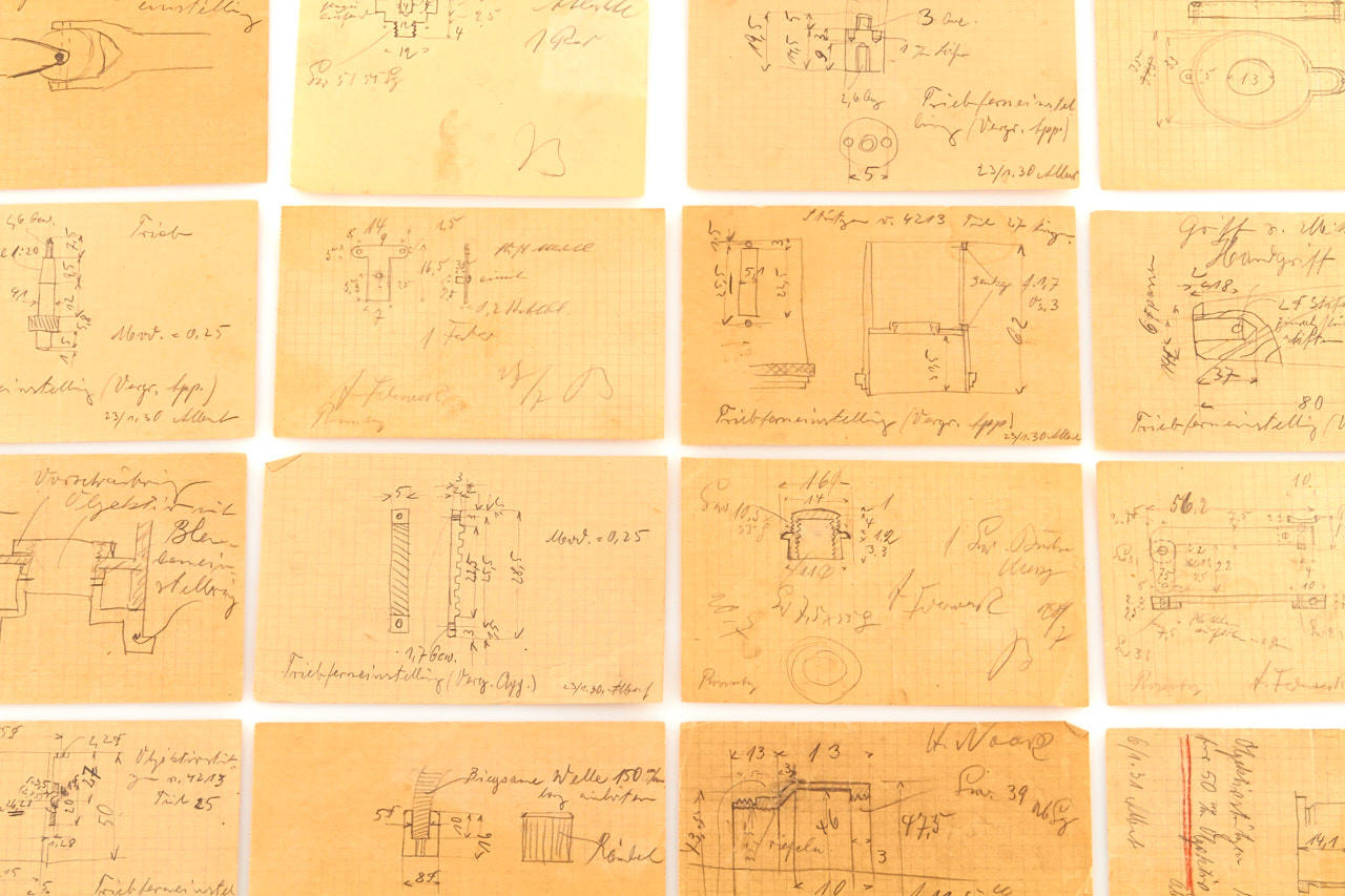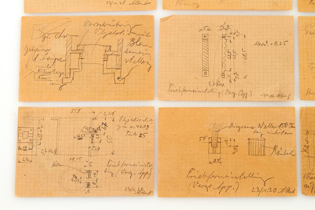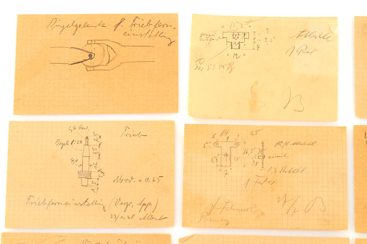 collection of 17 original 10x15cm construction drawings of Leitz cameras and accessories, 7 signed by Wilhelm Albert, 5 signed by Oskar Barnack