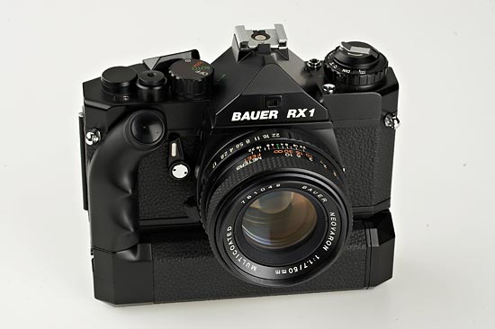 very rare camera in mint condition with Neovaron 1.7/50mm no.781049, Bauer winder the RX1 no.82800271, case for camera with winder, original maker's box for camera and lens - very rare camera (produced by Cosina for the 1978 Photokina)