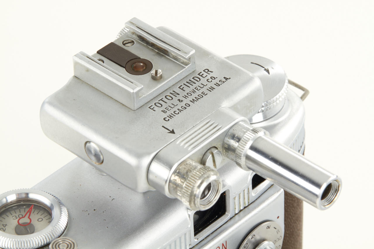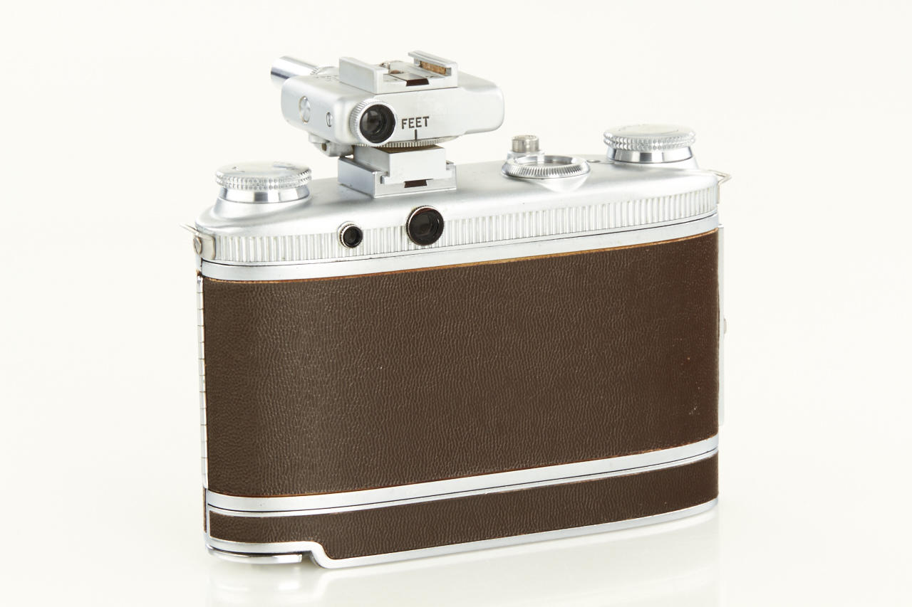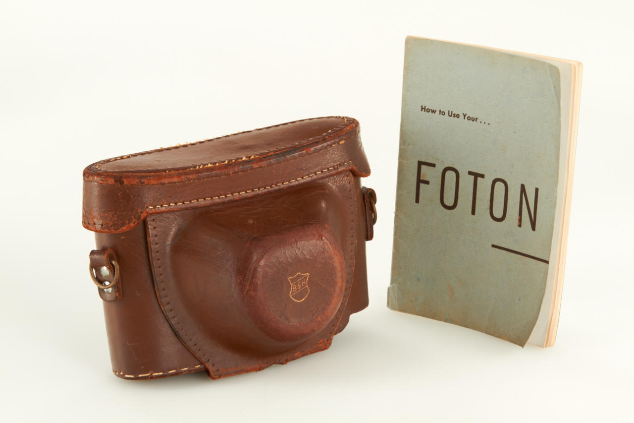 spring-driven 35mm rangefinder camera in very good working condition, with Taylor Hobson Cooke Amotal 2/2" no.301098 and very rare clean Cooke Telekinic Anastigmat 5.6/216mm no.459059, inclusive Foton Finder, Foton Flash Unit, original instructions and everready case