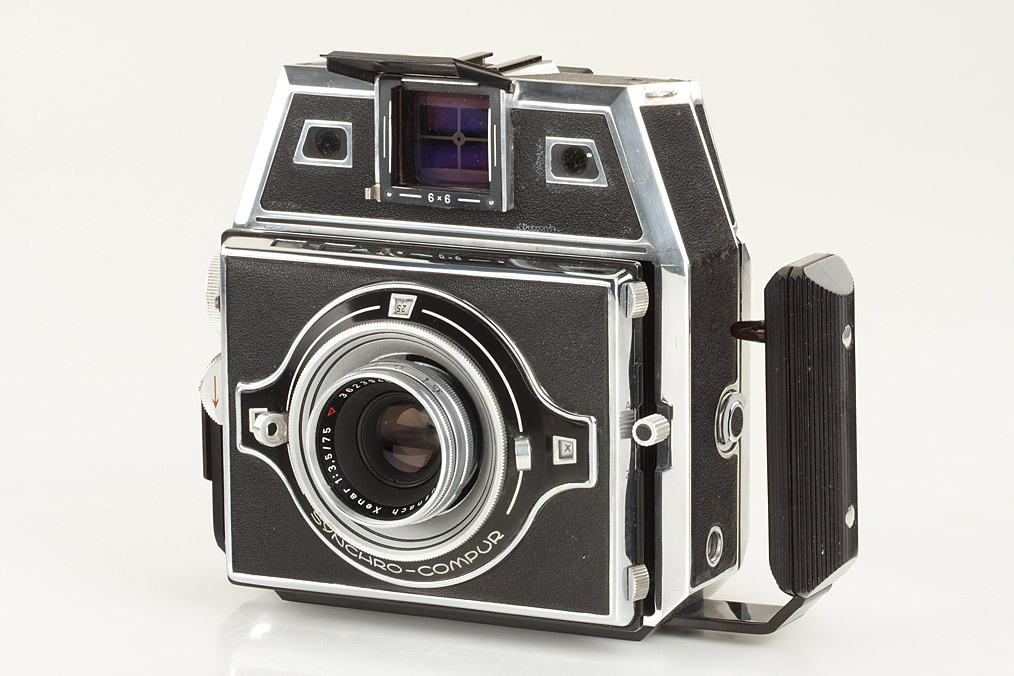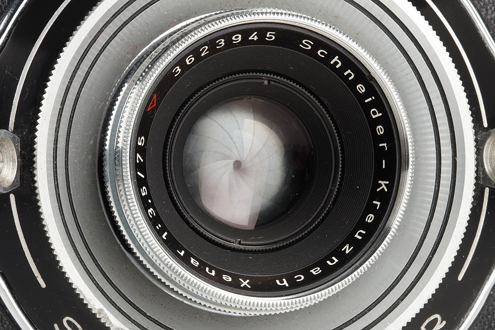 Bertram Press camera outfit in beautiful condition with Xenar 3.5/105mm no.3619064, Tele-Xenar 5.5/180mm no.3561955, Angulon 6.8/65mm no.3652008 and rare Xenar 3.5/75mm no.3623945, sports-finder, two rollfilm back, caps, strap, cable release, instruction book, all in original fitted outfit case