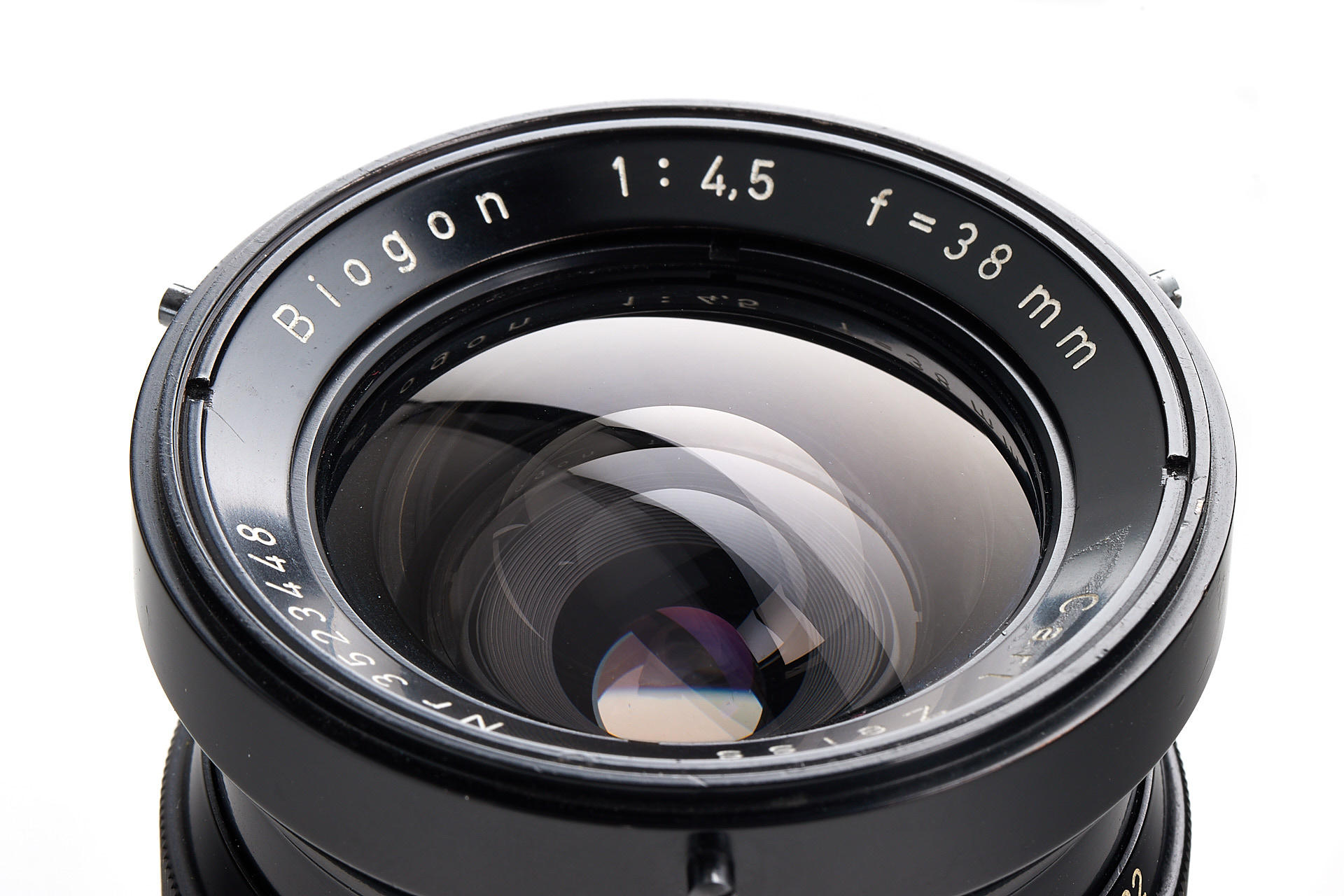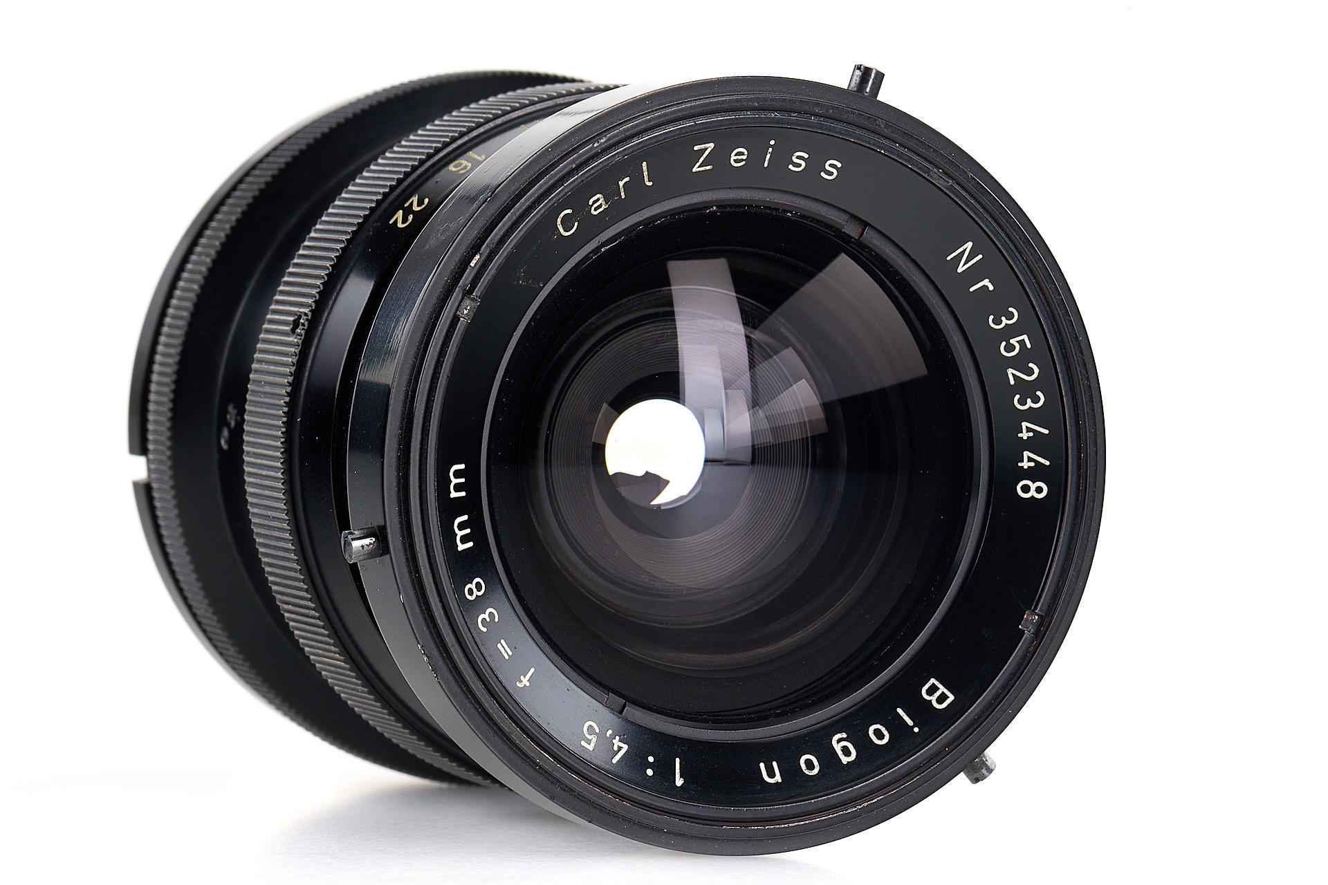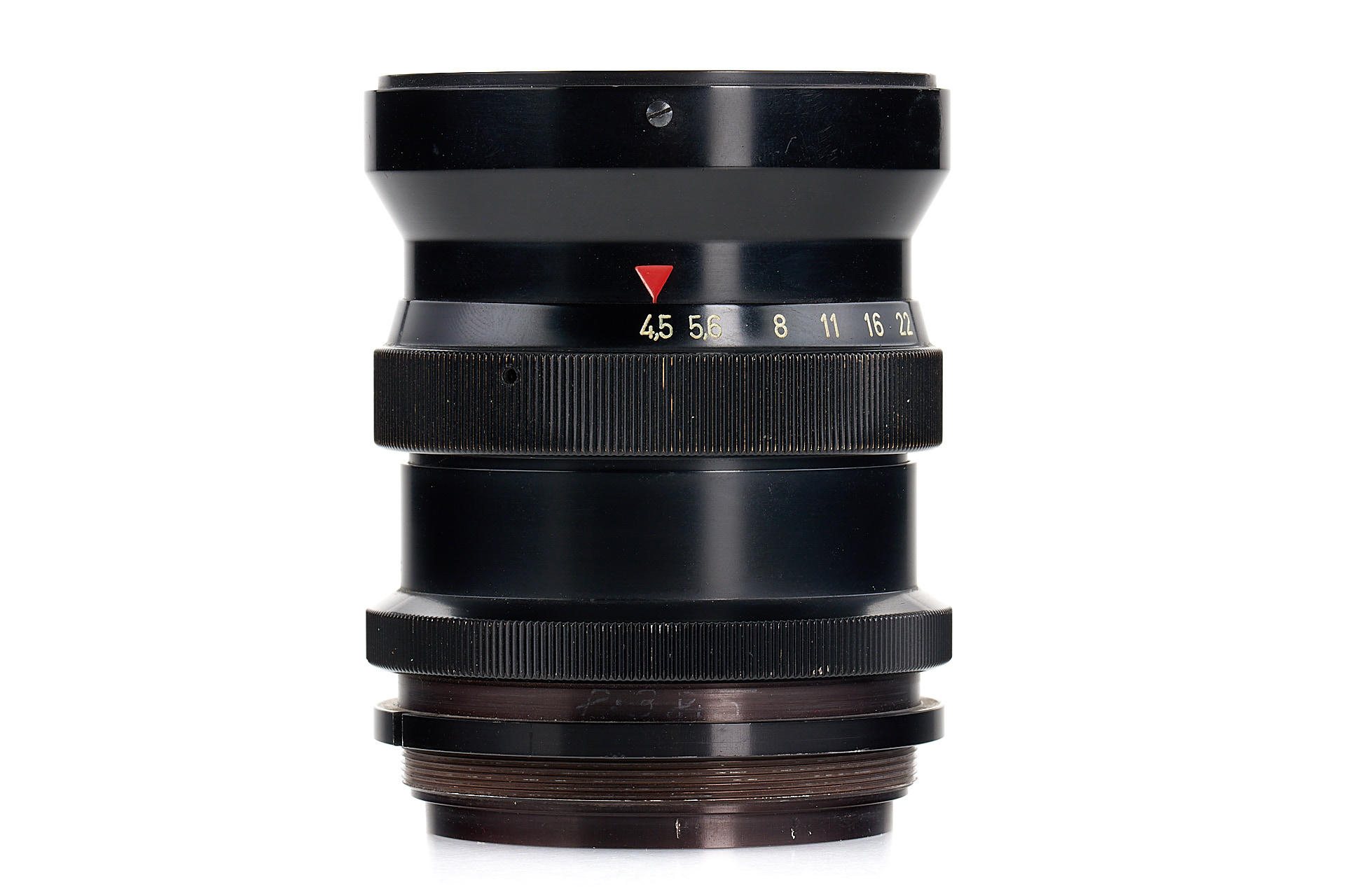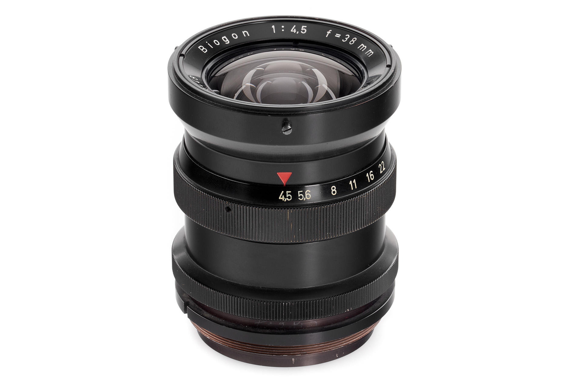 an interesting and rare Biogon in special mount for the aerial cameras, the same optical construction as the lens used in the Hasselblad SWC, aperture from f:4.5-22, in excellent condition (one aperture blade broken), with very good optics