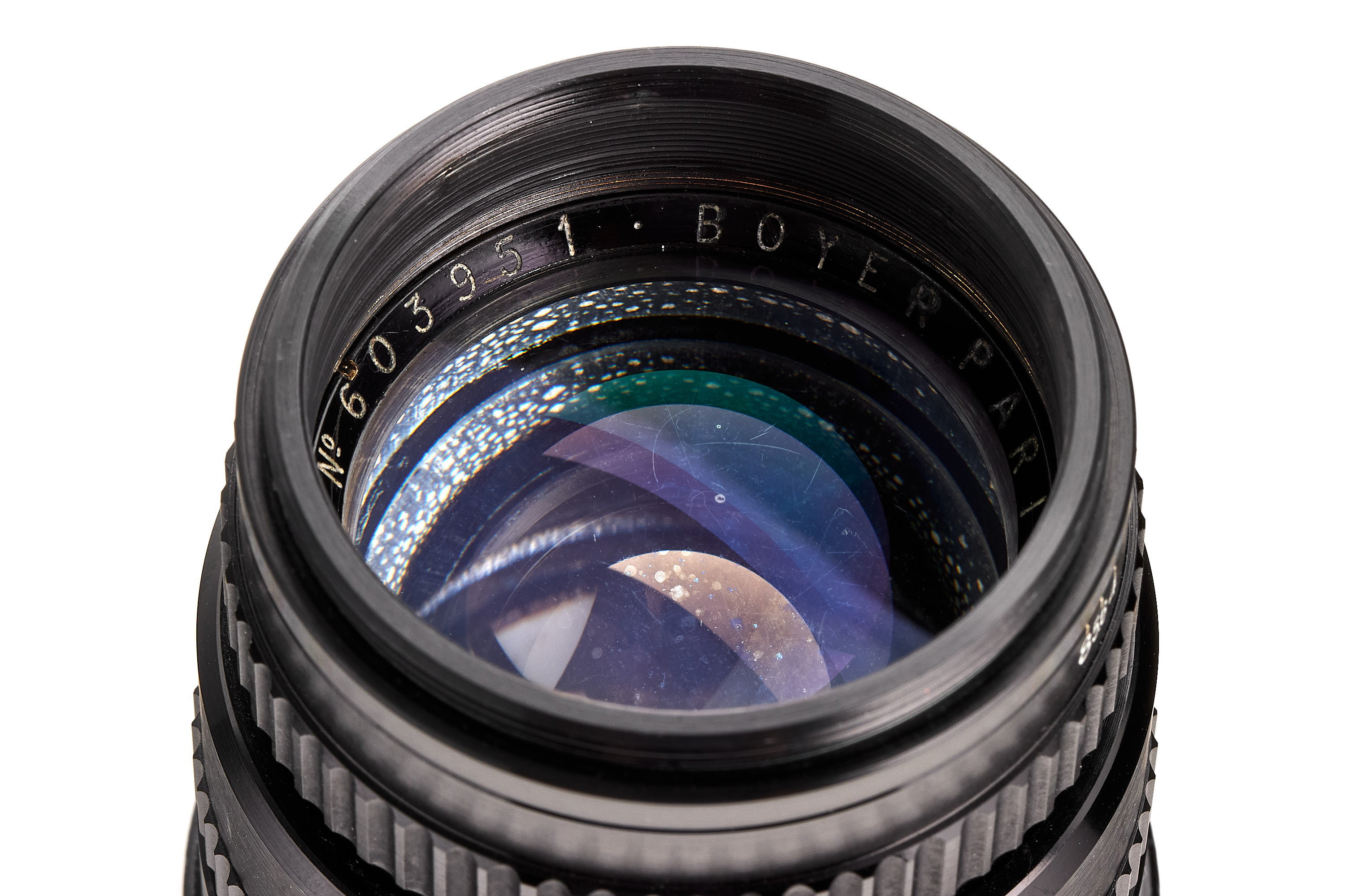 Rare sought-after French lens, known for its beautiful rendering, in very good condition, some blemishes on the front element (otherwise very good optics), in good quality, modified to coupled M-mount.