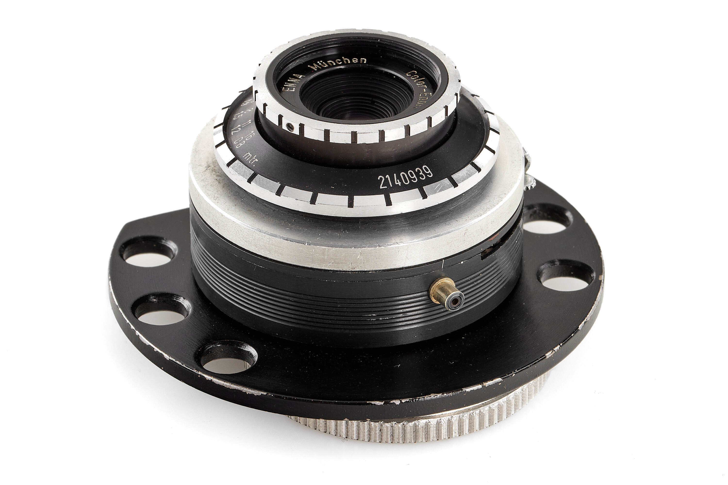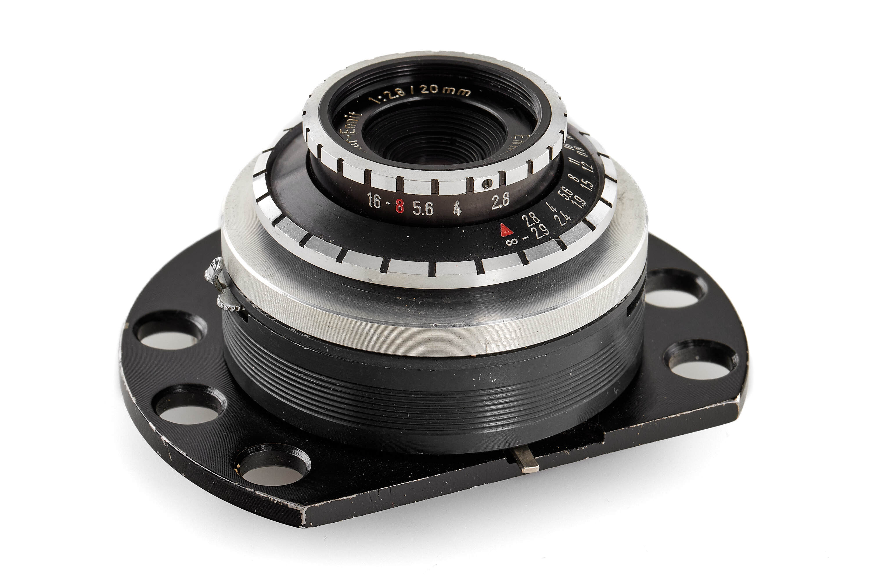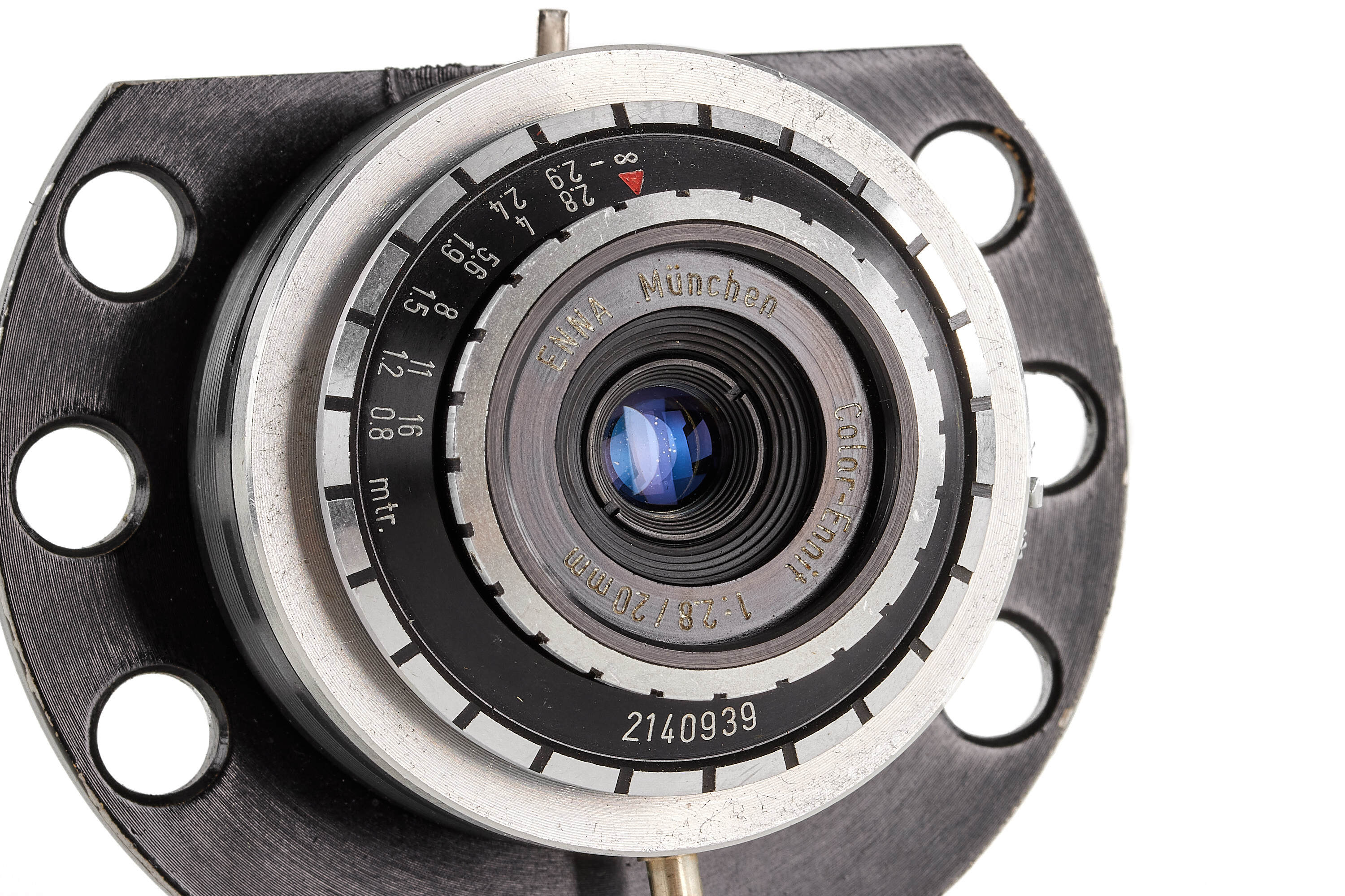 Rare subminiature camera for 5 exposures on a round film plate, hand-made by Franz Brinkert in the 1980s in Germany, shutter and lens are from the remaining stock of Goldeck 16 cameras, with Enna Color-Ennit 2.8/20mm lens, excellent condition.