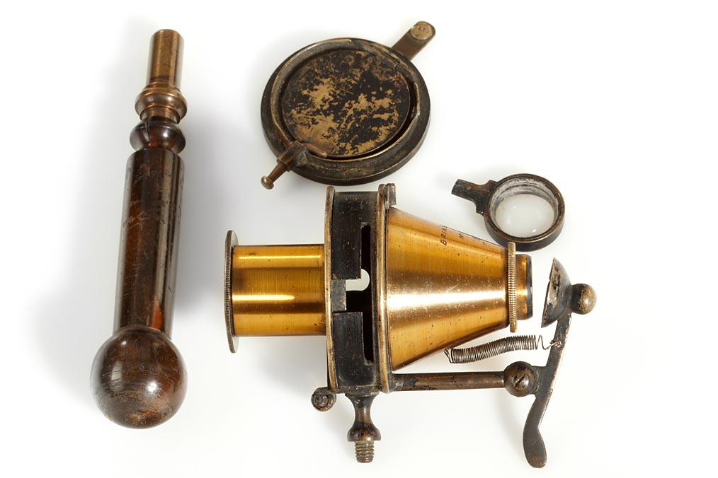 extremely rare miniature detective camerain the form of an spyglass, takes 25mm circular plates, with 3.5/3cm lens in simple front shutter, the 100% original camera in complete, beautiful condition with film holder, viewfinder, handle, all in fitted wooden case stamped SWIFT & SON LONDON