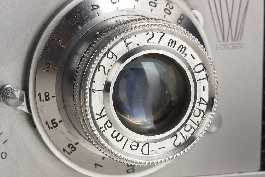 very rare Luxia in chrome with black reptile leather, Delmäk 2.9/27mm no.461612, original cap, both spools inside