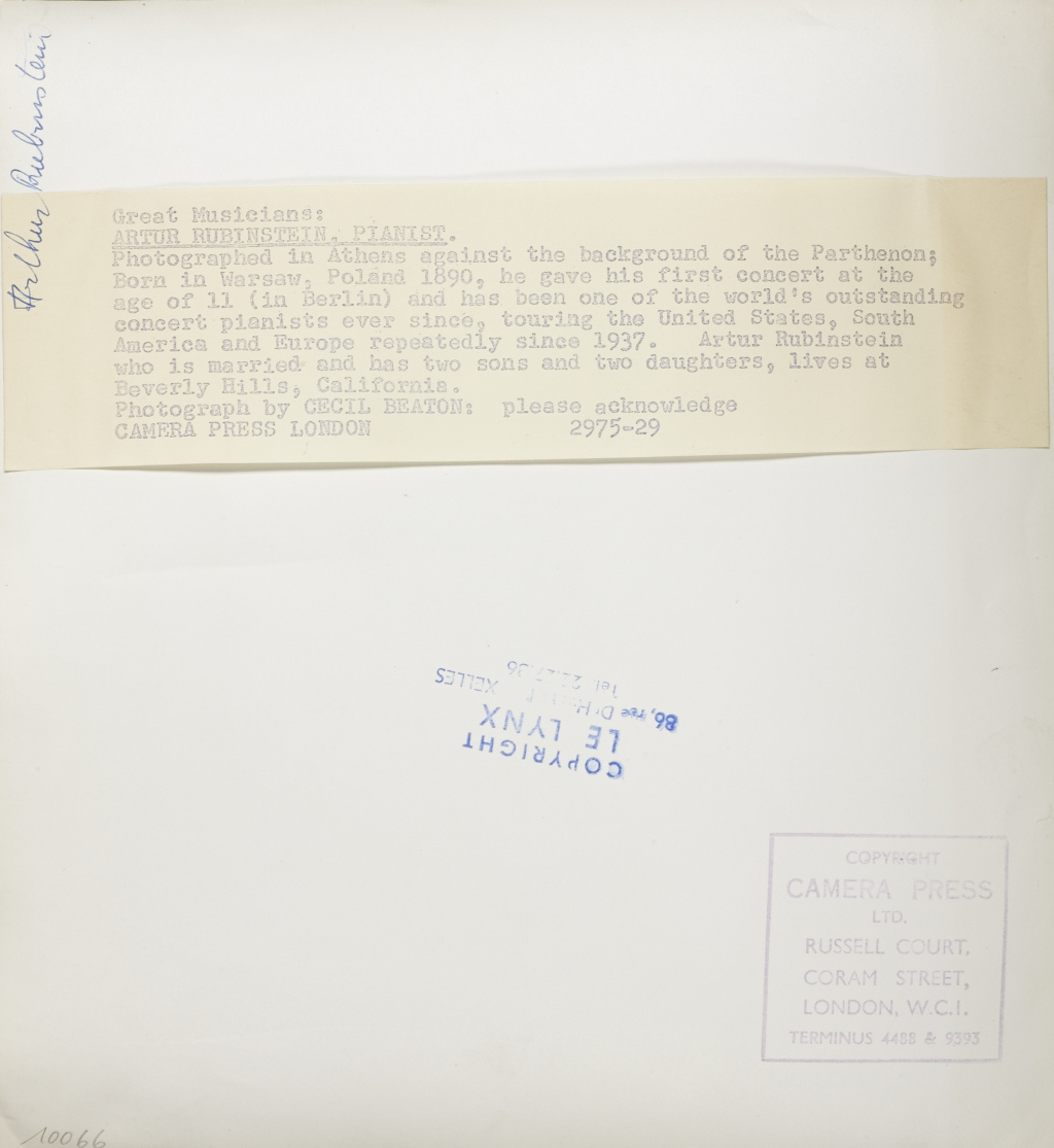 CECIL BEATON (1904–1980) Arthur Rubinstein in front of the Parthenon, Athen c. 1955