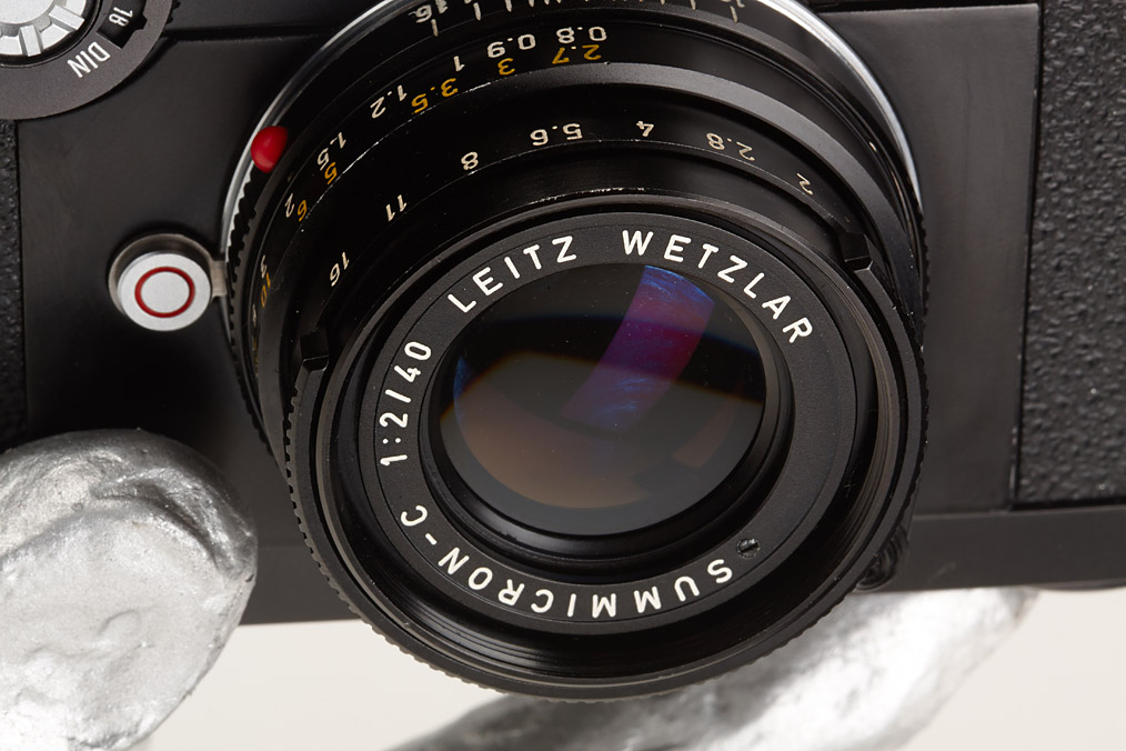 mint camera with matching Summicron-C 2/40mm Dummy with original rare Leitz hand display stand