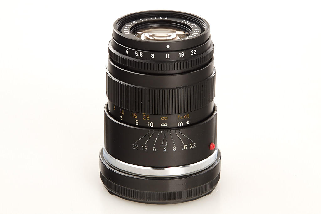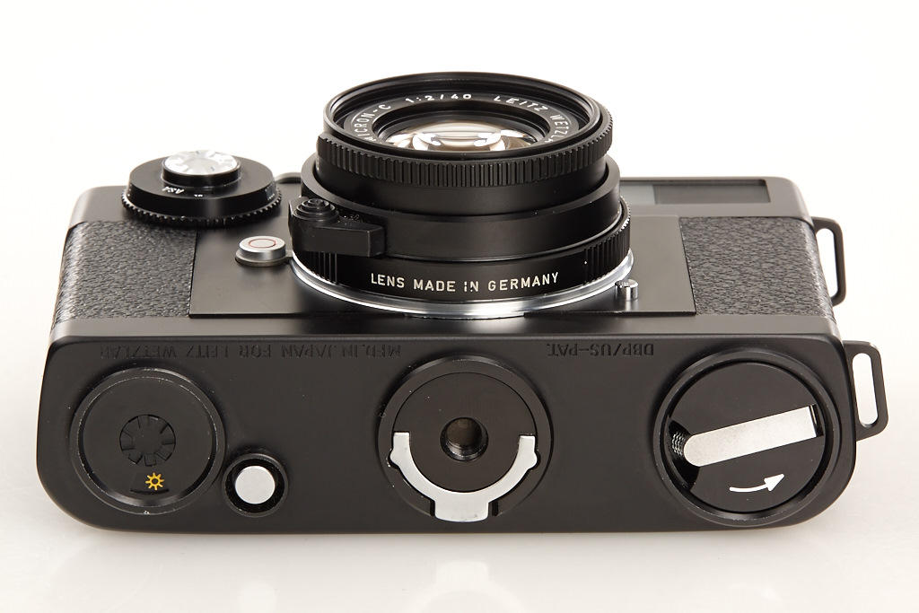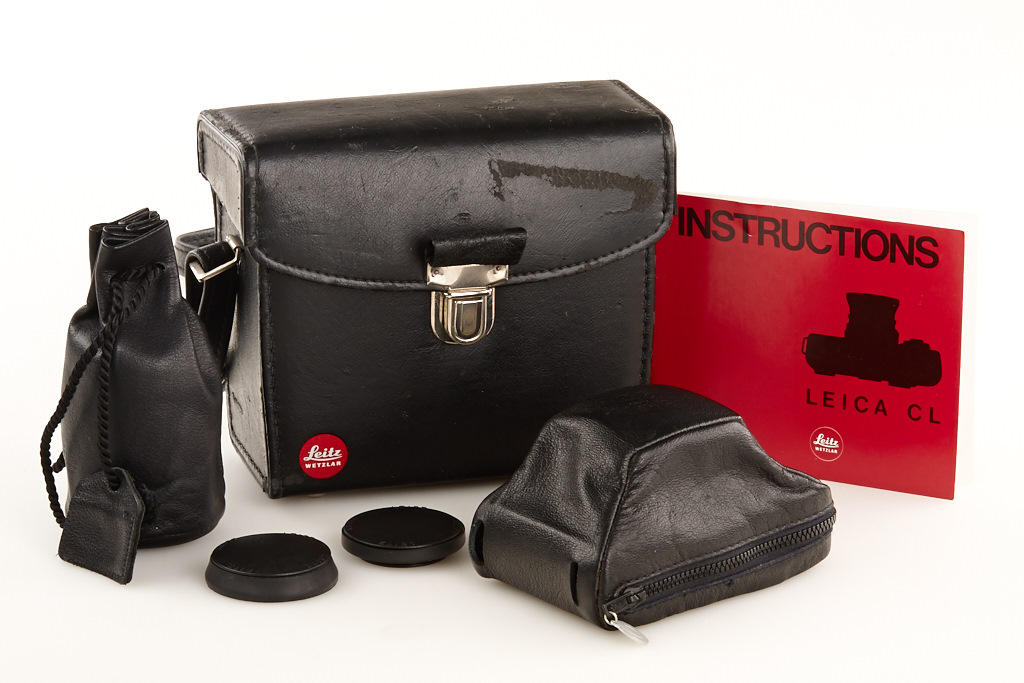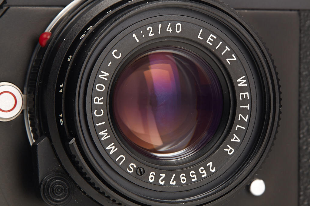 mint body with clean Summicron-C 2/40mm no.2559729 (hood, cap, case), Elmar C 4/90mm no.2642825 (hood, cap, keeper), instructions and Leitz outfit case