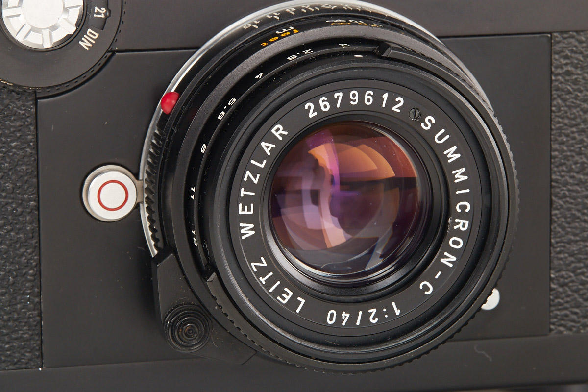 in new condition including body no.1409426 (cap, strap, case, instructions) with Summicron-C 2/40mm no.2679612 (caps, hood, filter), Elmar-C 4/90mm no.2601333 (caps, hood, keeper), outfit case 14825, all in original maker's boxes