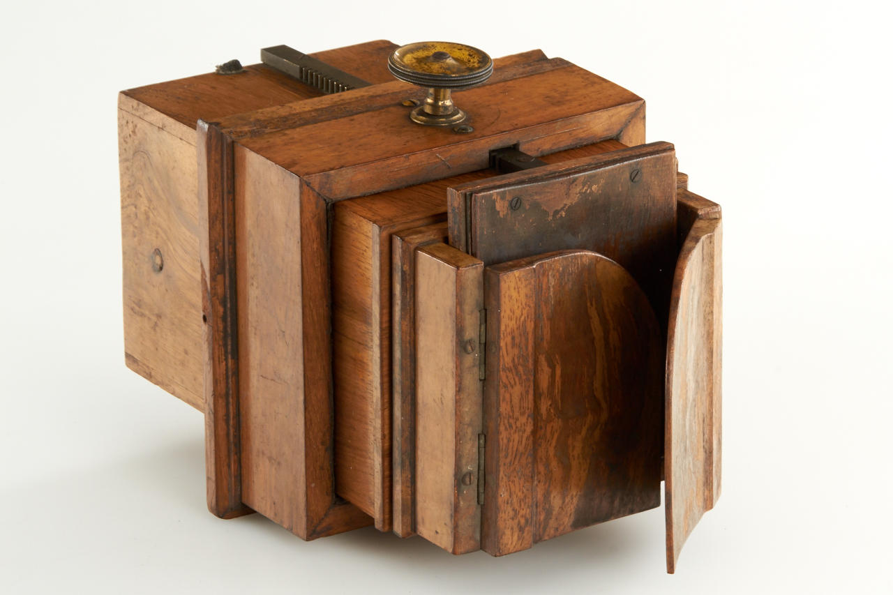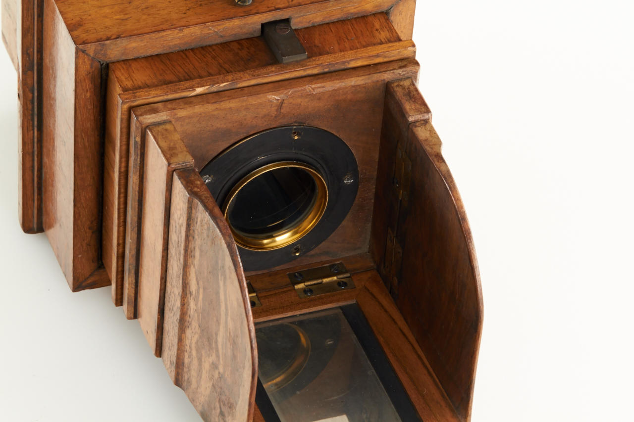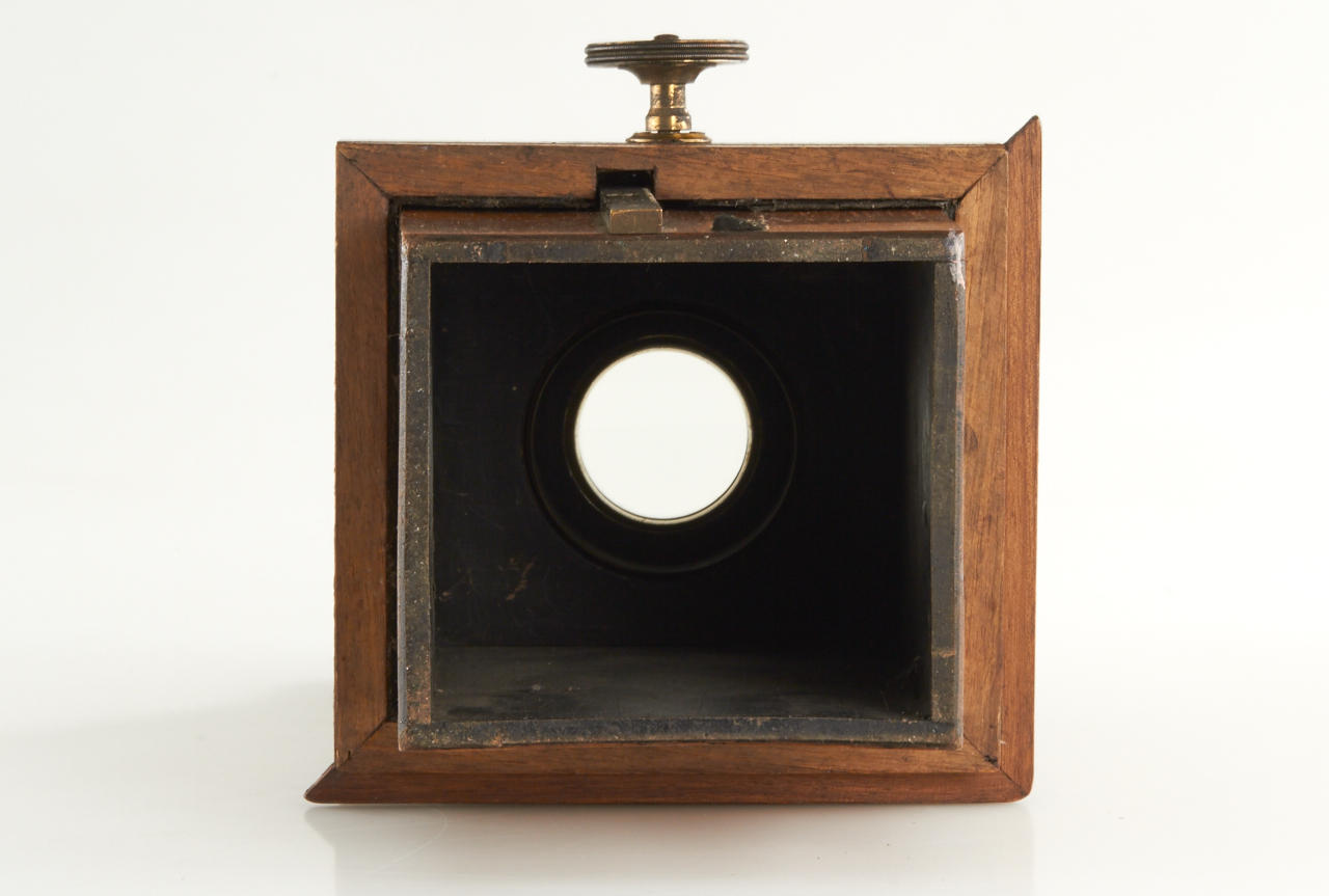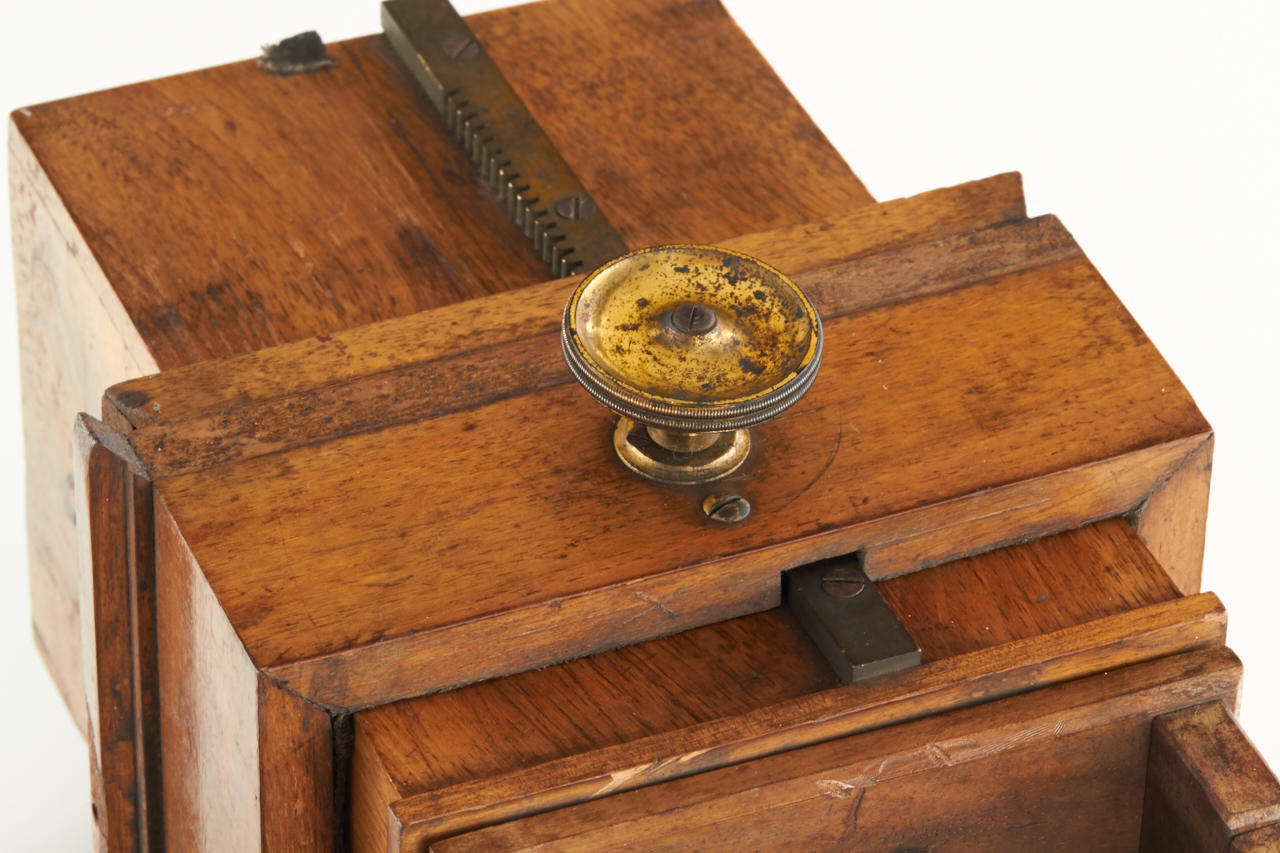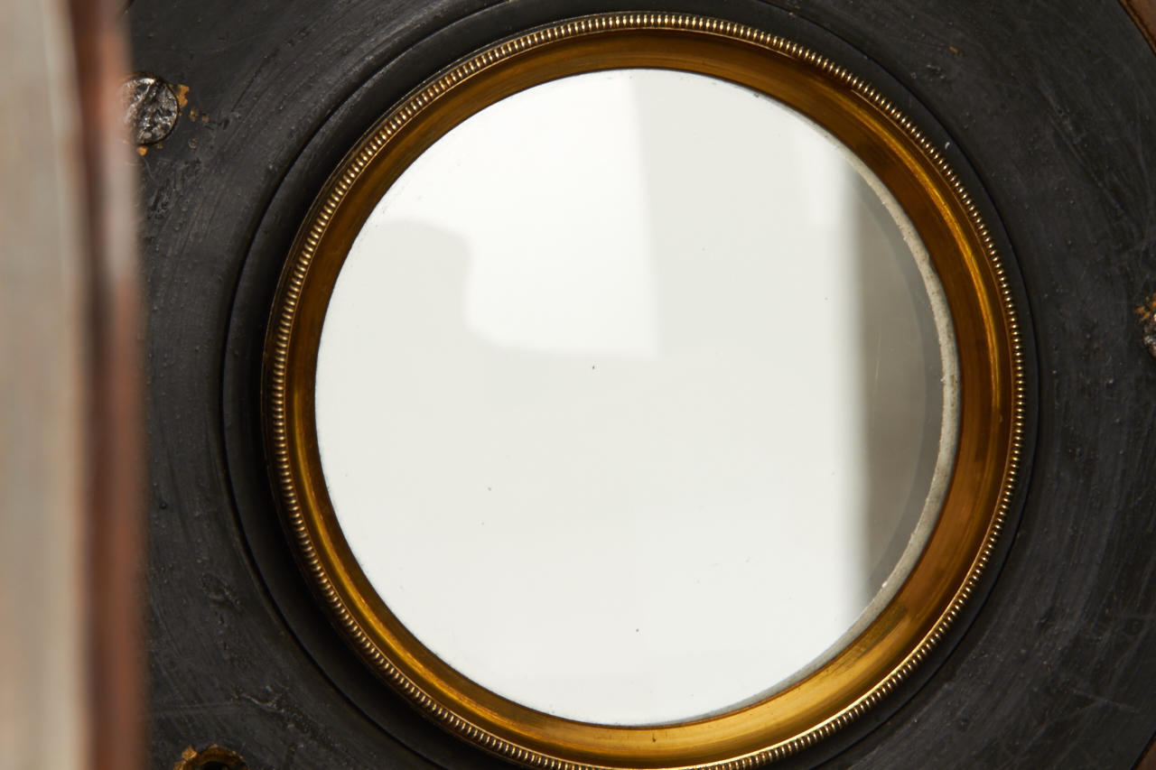 Optical part of a very early German or French camera obscura with lens, rotating top, radial focusing mechanism and folding mirror, devices like this one were used combined with a tent or wooden body - see Abring II 1183