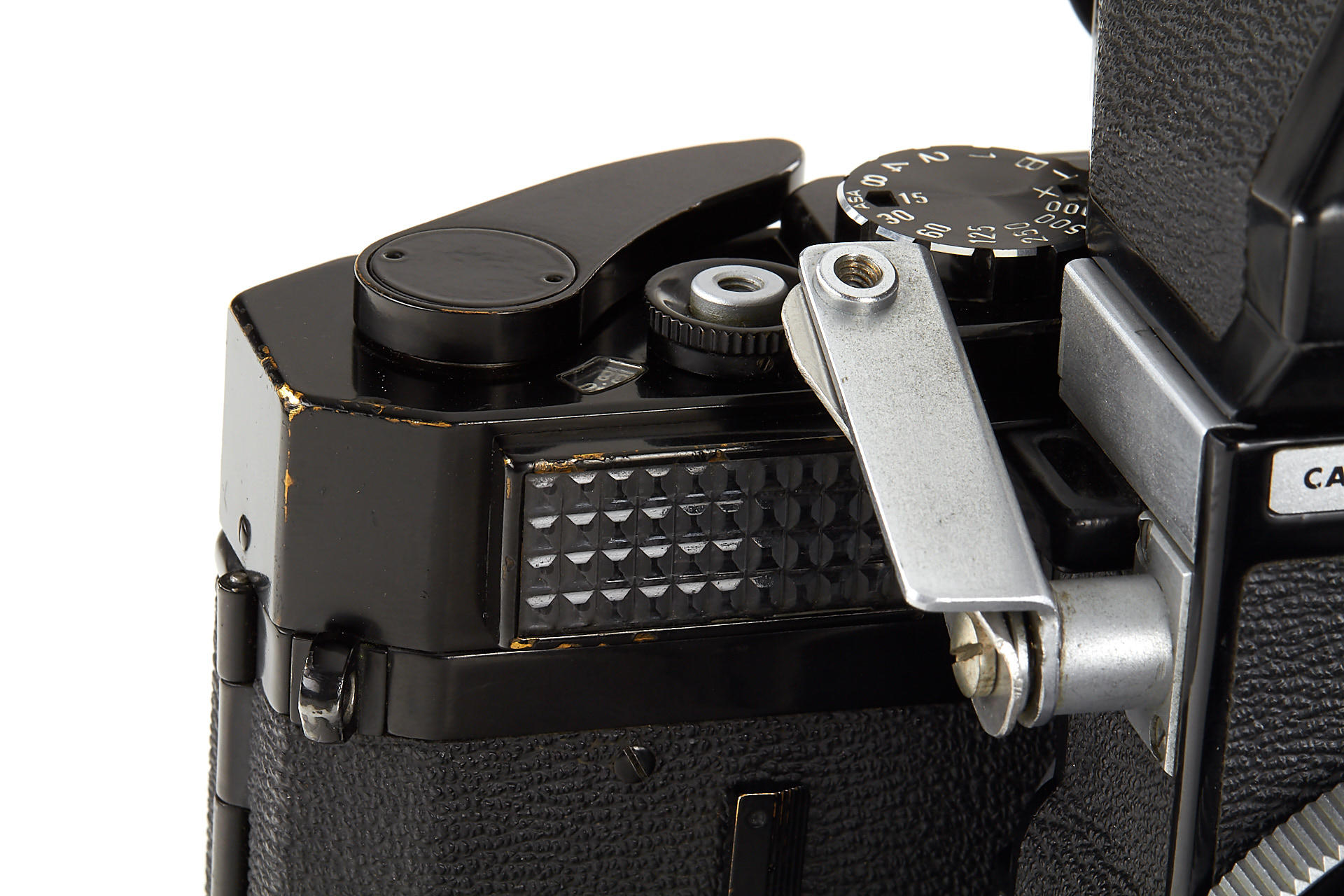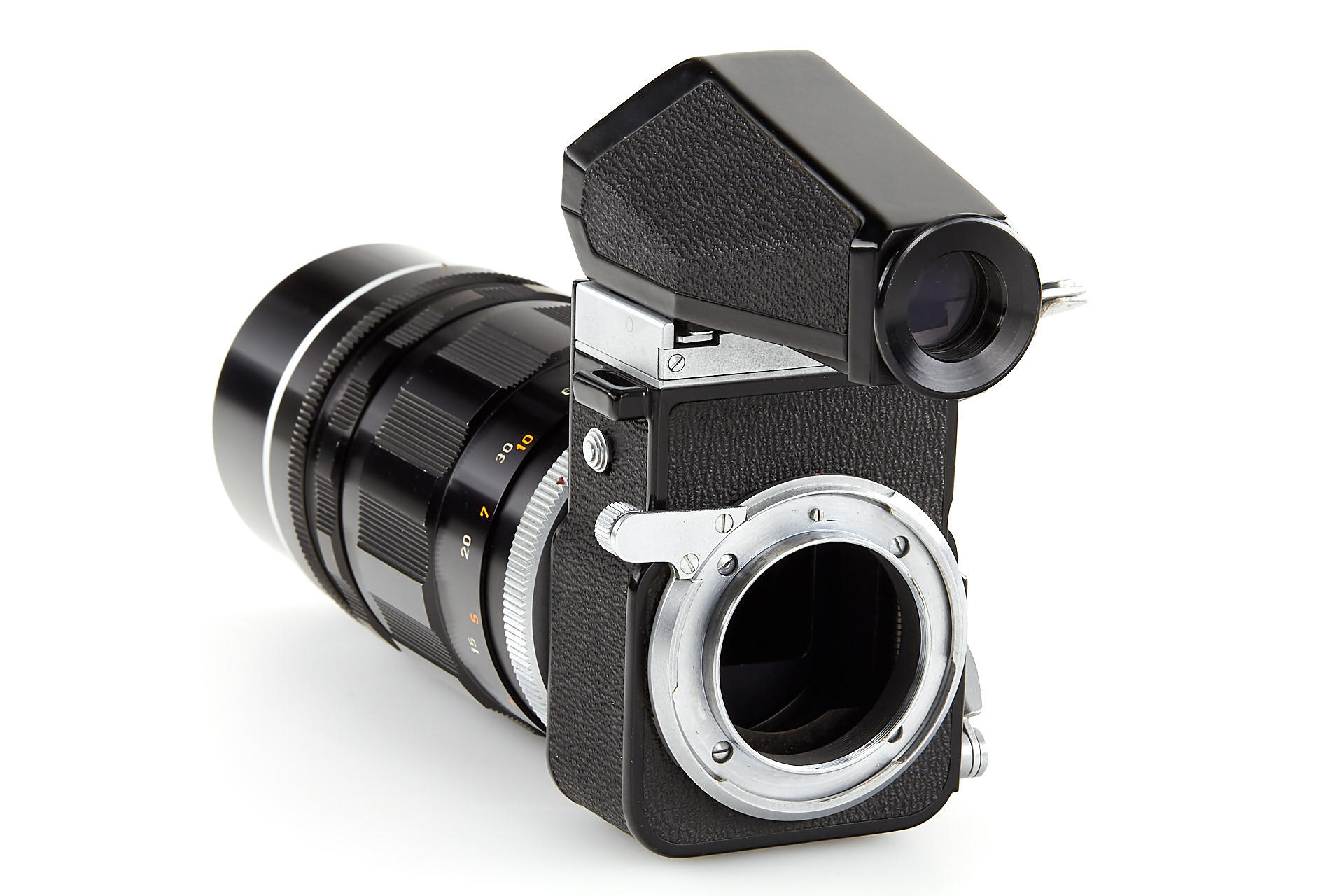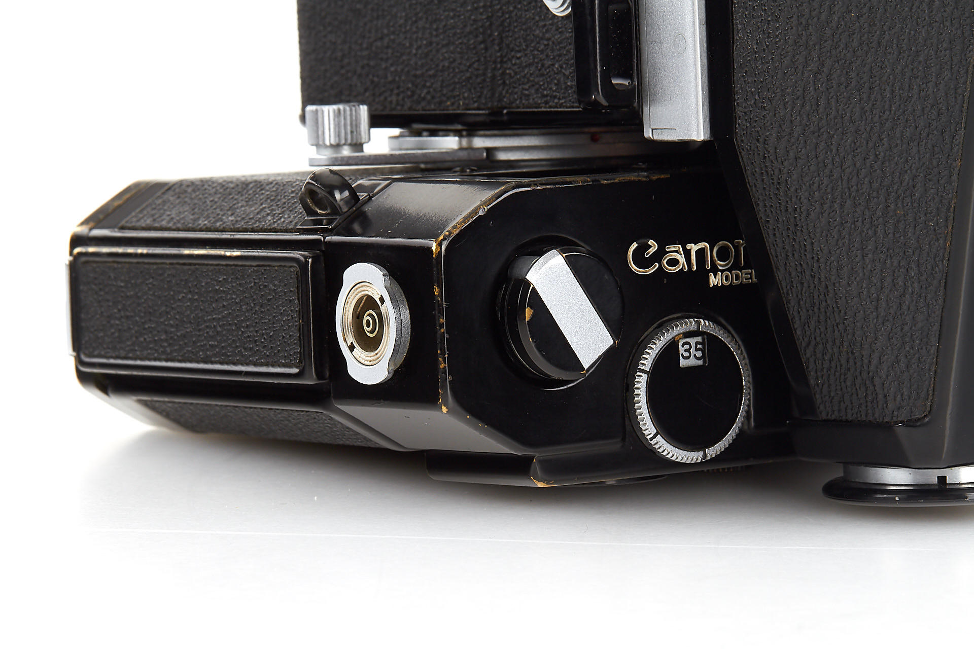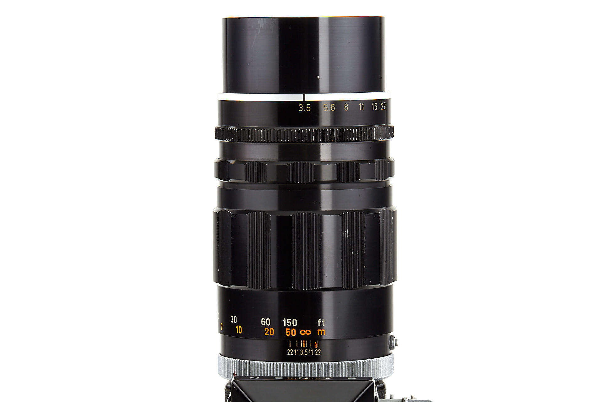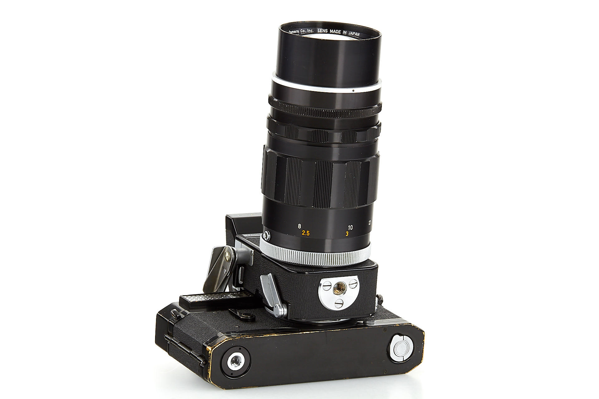 an original black paint Canon 7 in very fine condition and good working order, with rare Canon Mirror Box 2 (with a short arm to use with double cable release), and Canon M 3.5/200mm no.10286 (good optics with only minimal cleaning marks, original front cap)