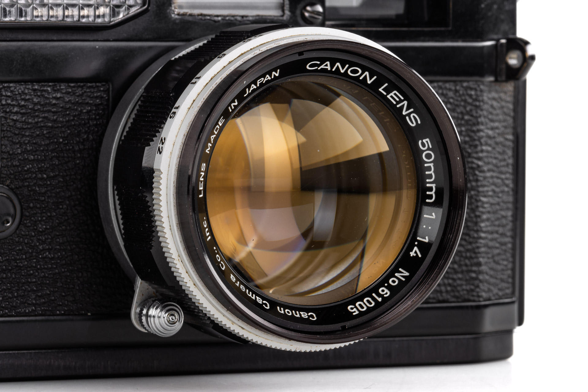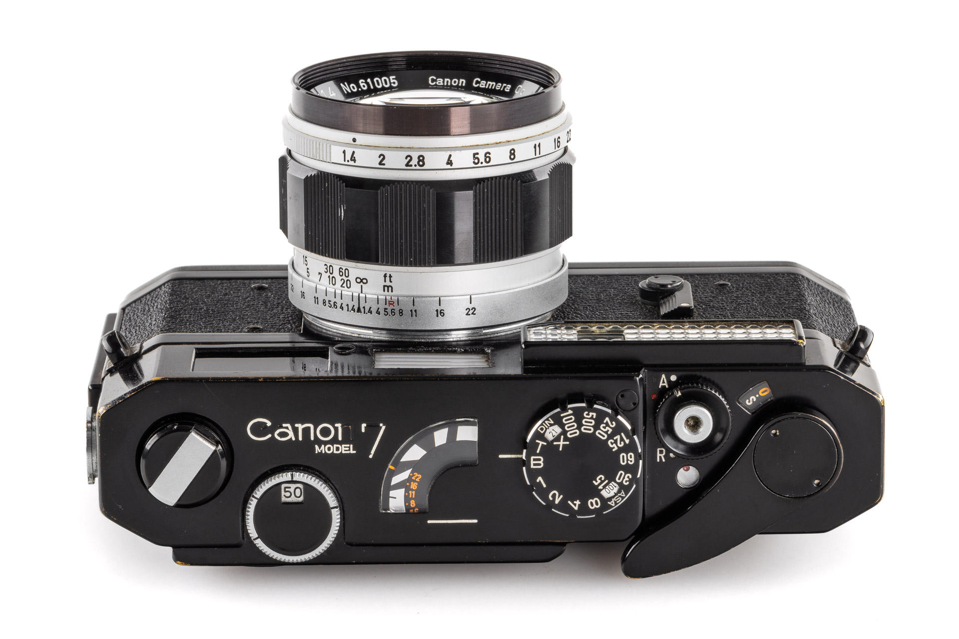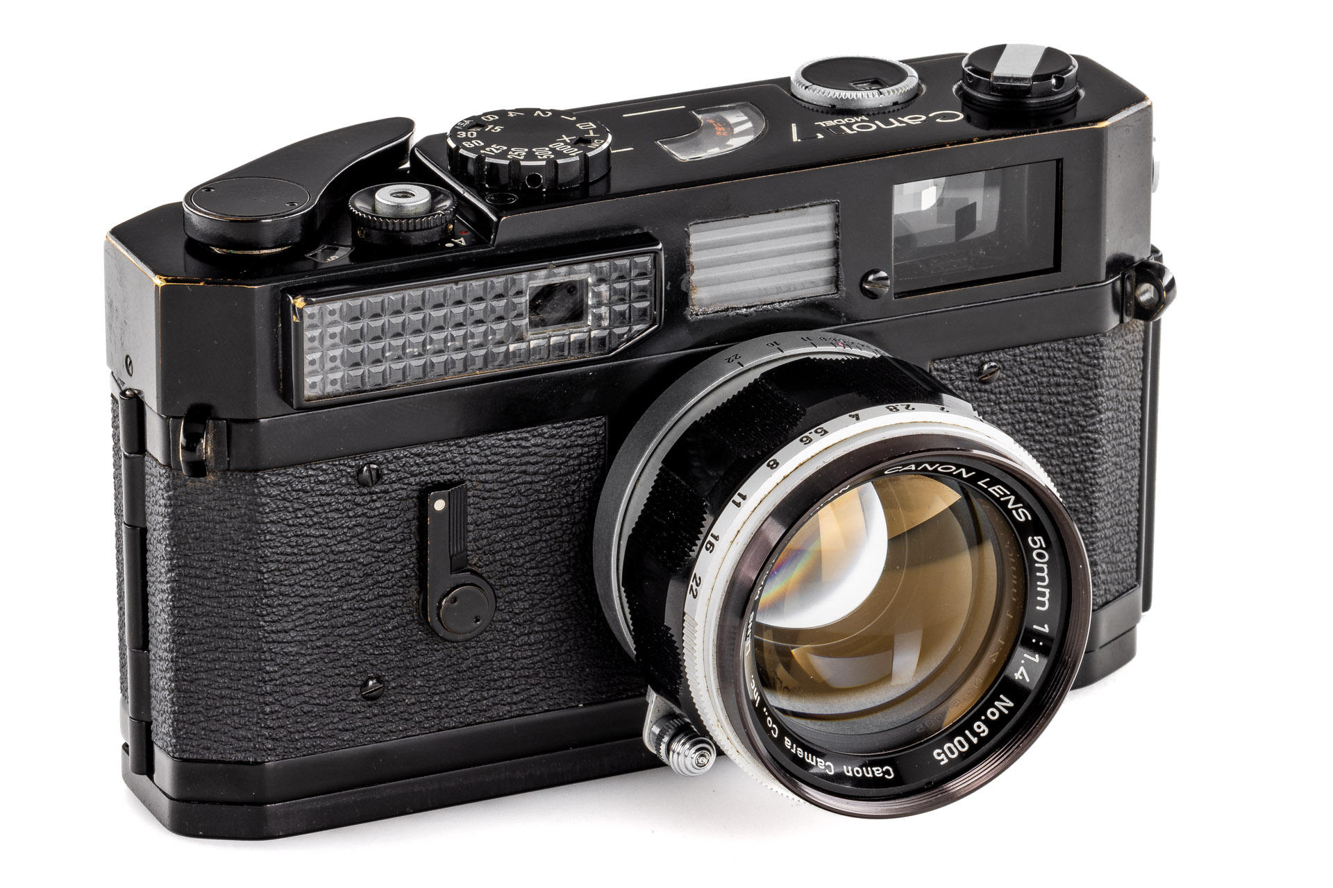 rare Canon 7 in black paint finish, in excellent original, unrestored condition and good working order, with M39 Canon 1.4/50mm no.61005 (very good optics with only a few hairline marks)