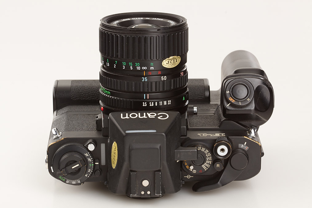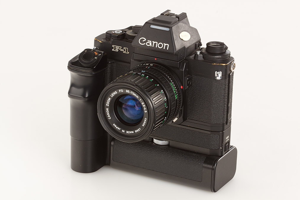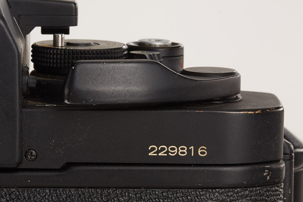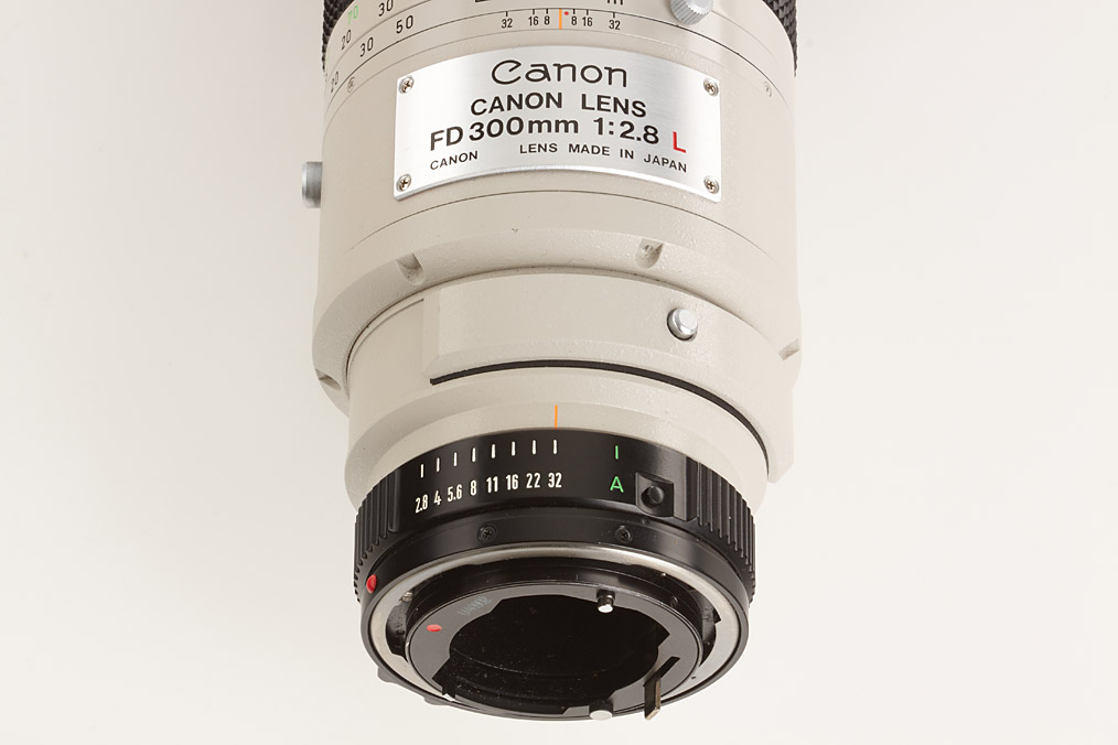 black body in with AE prism finder, AE Motor Drive FN no.148217, Canon FD Zoom 3.5-4.5/35-70mm no.1880576 (caps), near mint Canon FD 1.2/85mm L no.28221 (caps), near mint fast Canon FD 2.8/300mm L no.14425 with hood, caps, keeper and 2x-A Converter in keeper, previously owned by the Landeskriminalamt Sachsen-Anhalt (Criminal Investigation Department of Sachsen-Anhalt)