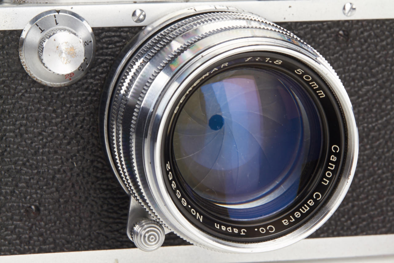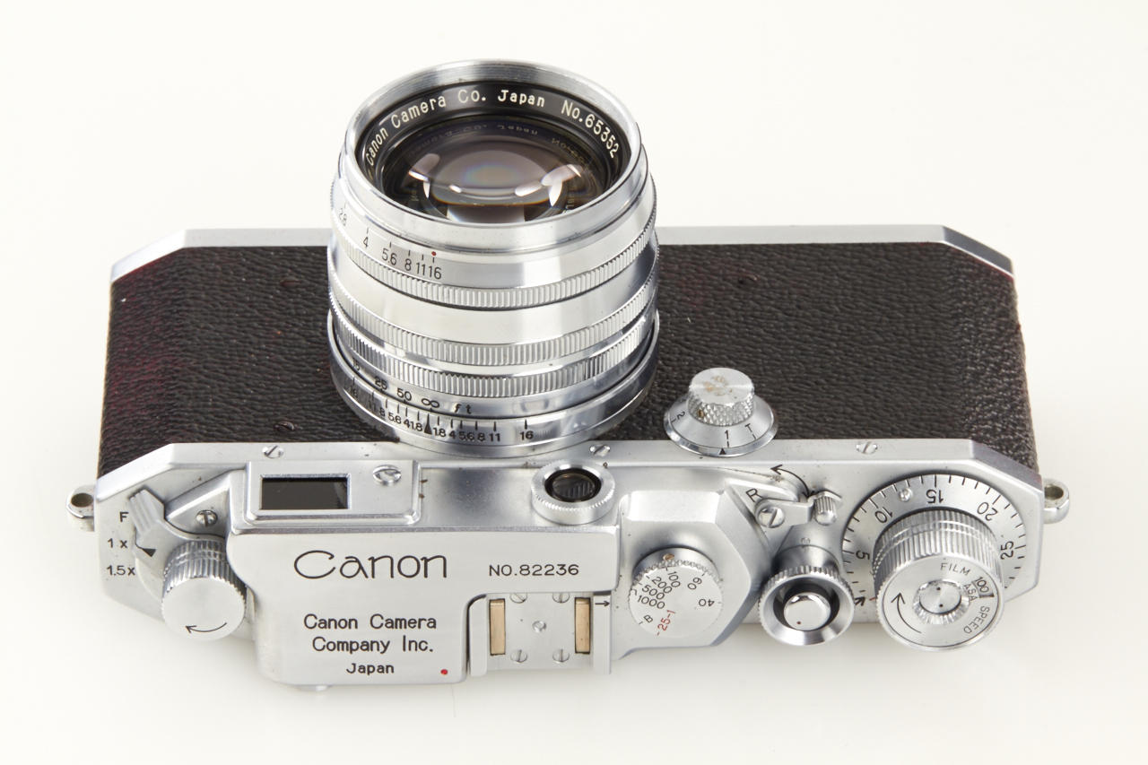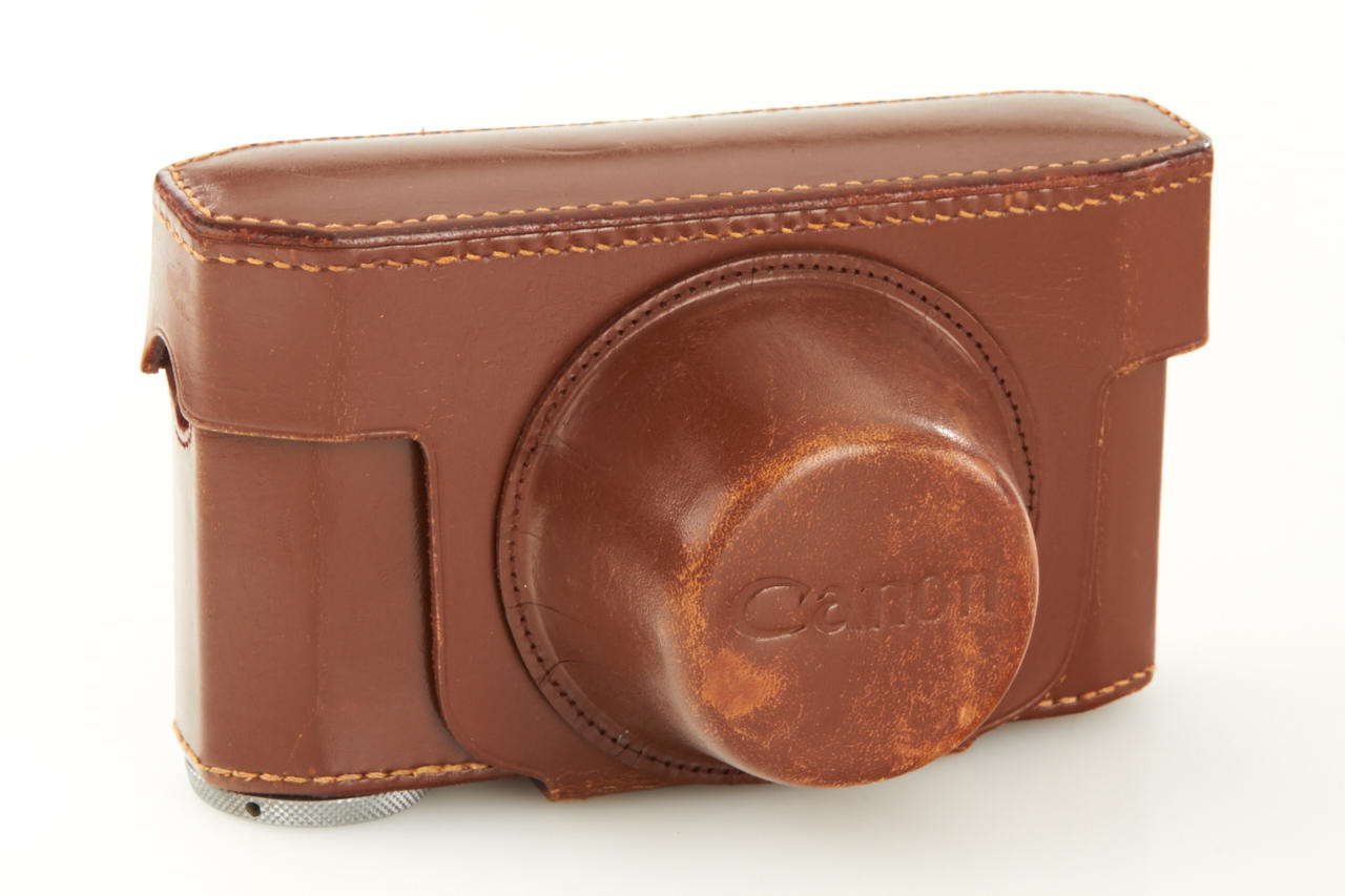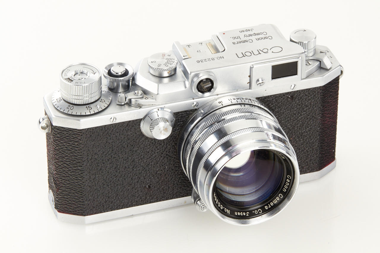 uncommon Canon IIIa with film type indicator in perfect and good working order, chrome Serenar 1.8/50mm no.65352, cap, original case
