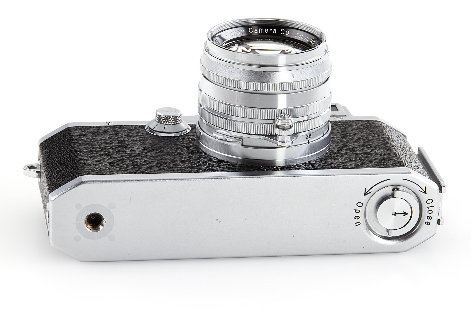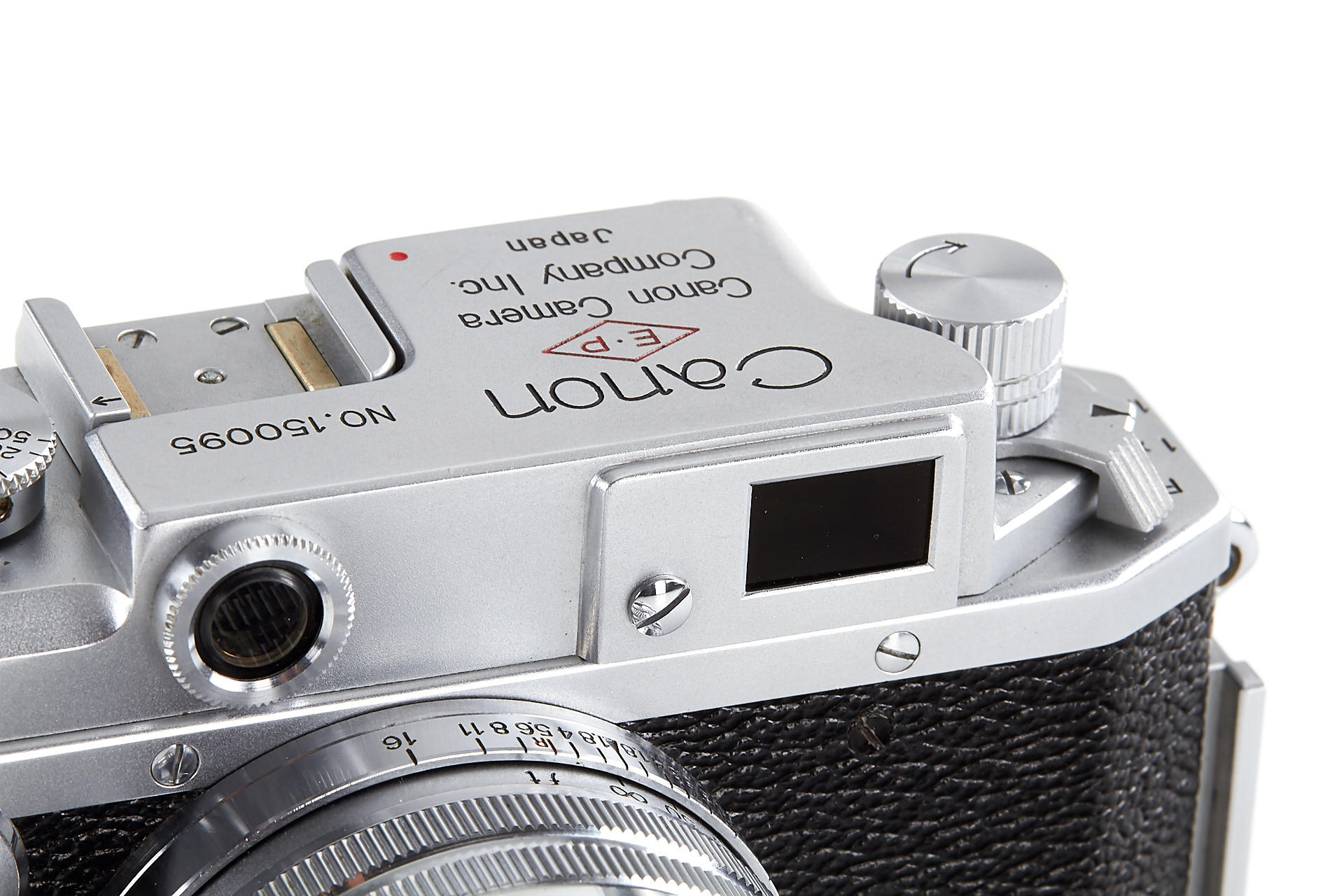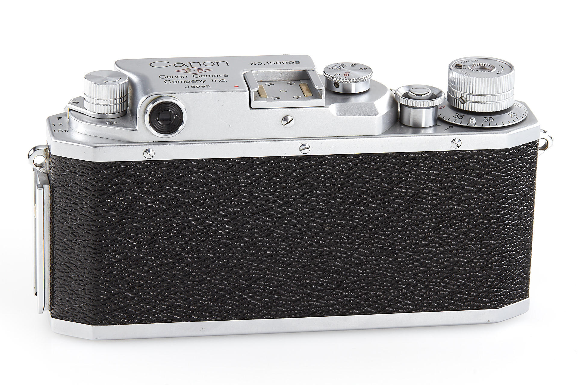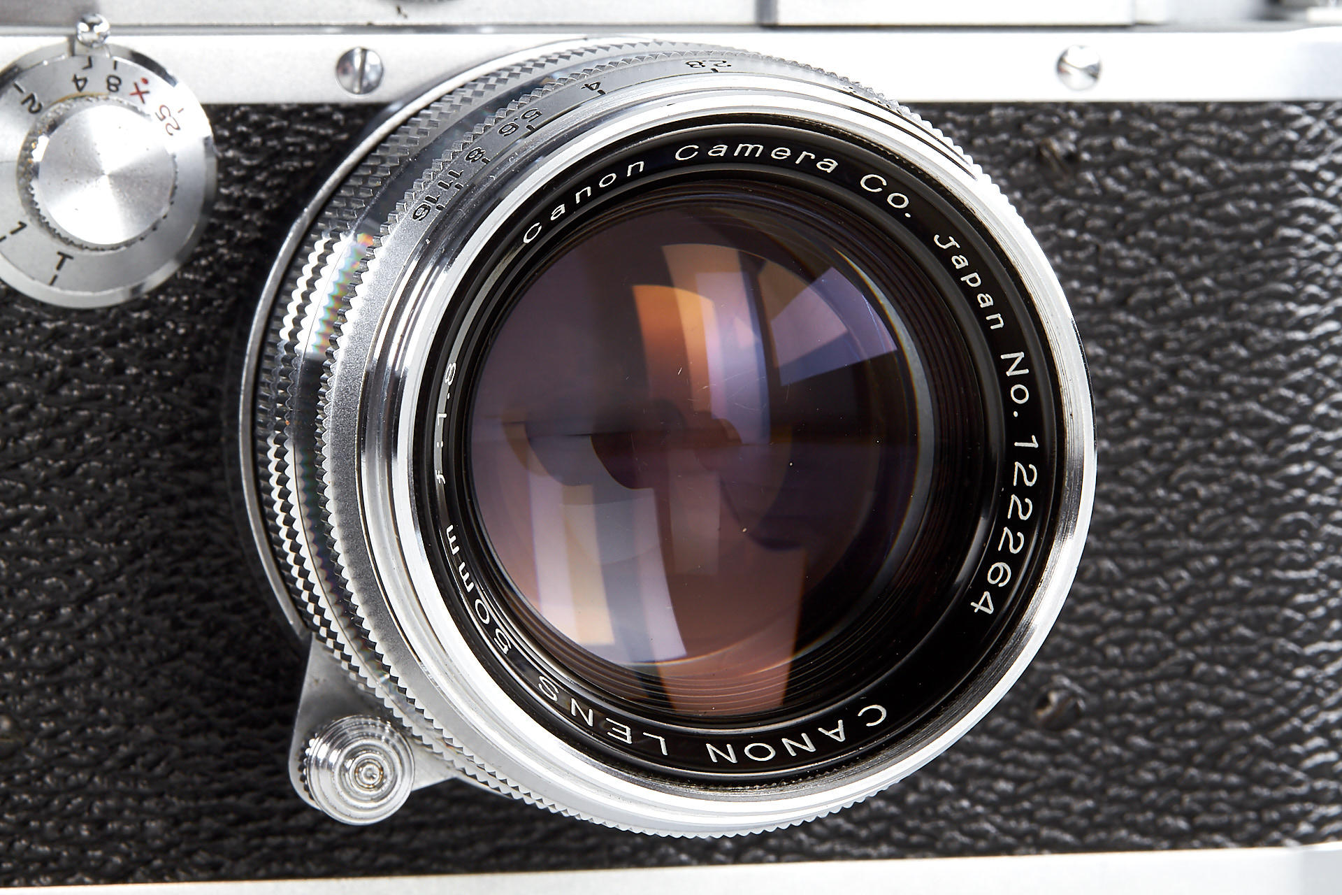 body in excellent condition and good working order, engraved with 'E.P' (export permitted) on the top plate, with Canon 1.8/80mm no.122264 (near mint with good optics)