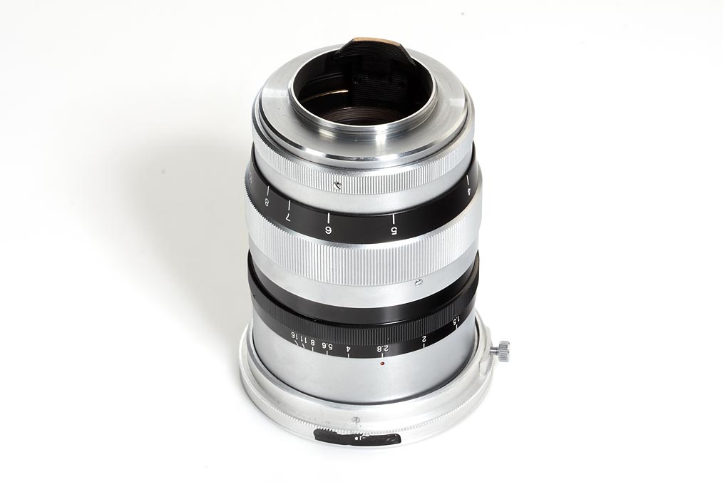 in coupled M39 screw mount, rare black/chrome portrait lens with clean optics, original hood, matching 85mm finder