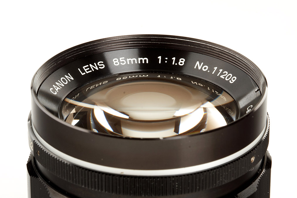 late black 85mm Canon Lens in near mint condition, very fine cleaning marks on front element, both caps