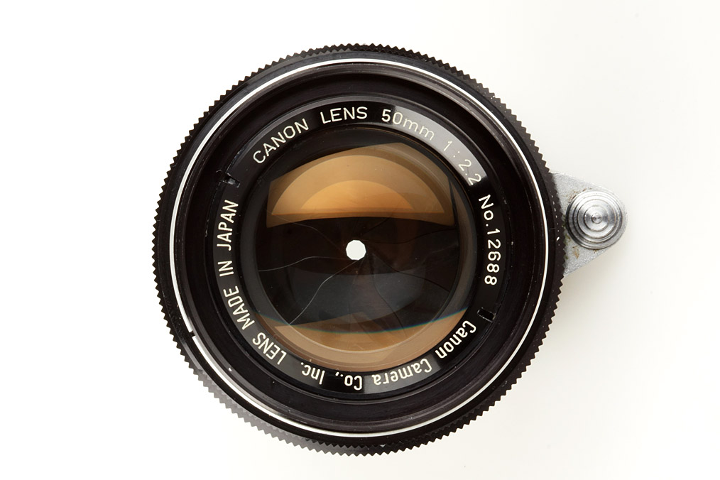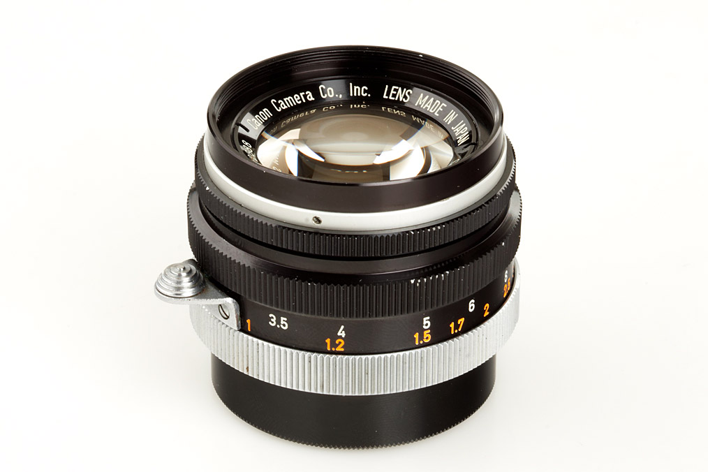 rare, late complete black Canon Lens in excellent condition, both caps, this lens was only sold with Canon P