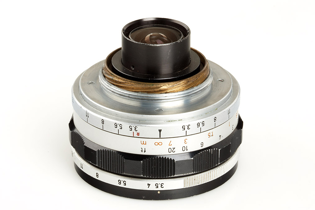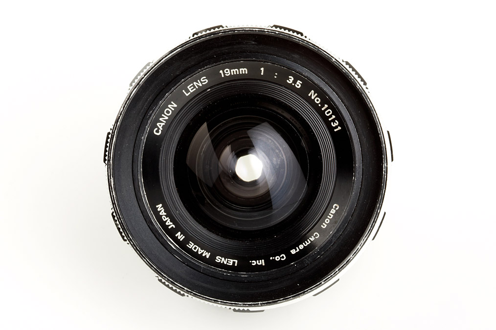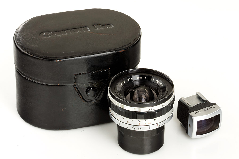 rare, RF coupled, lens in fine condition with light cleaning marks on front element , rear cap, original Canon 19mm finder, Canon case