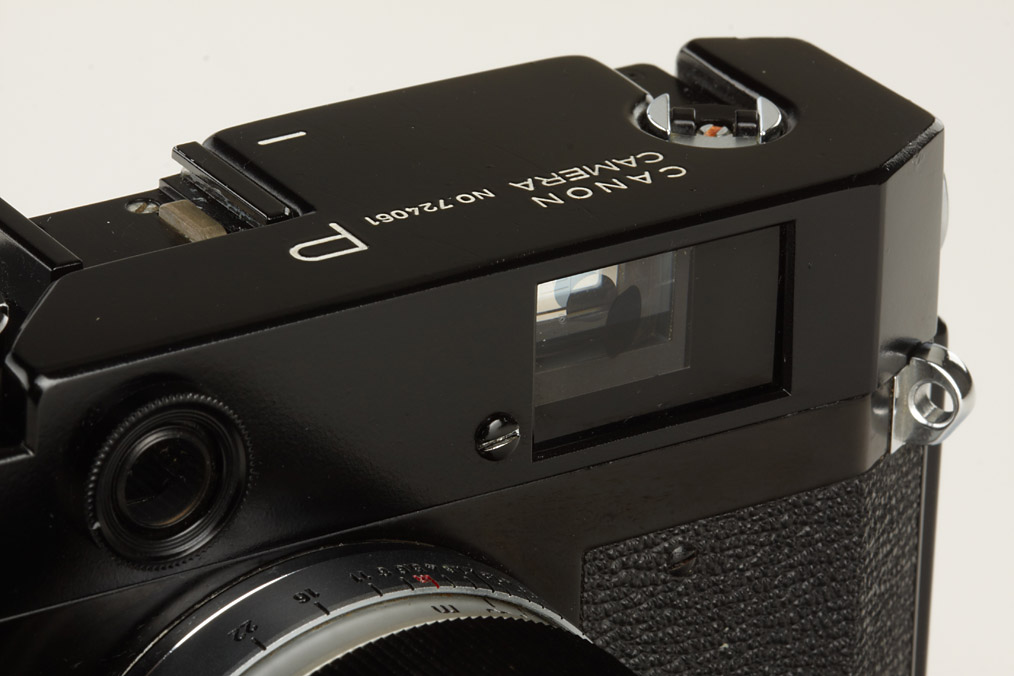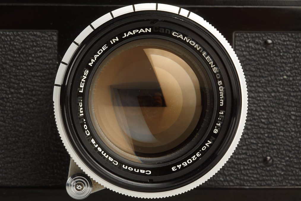 original and rare black painted Canon P in good working condition, black Canon Lens 1.8/50mm no.320543, cap