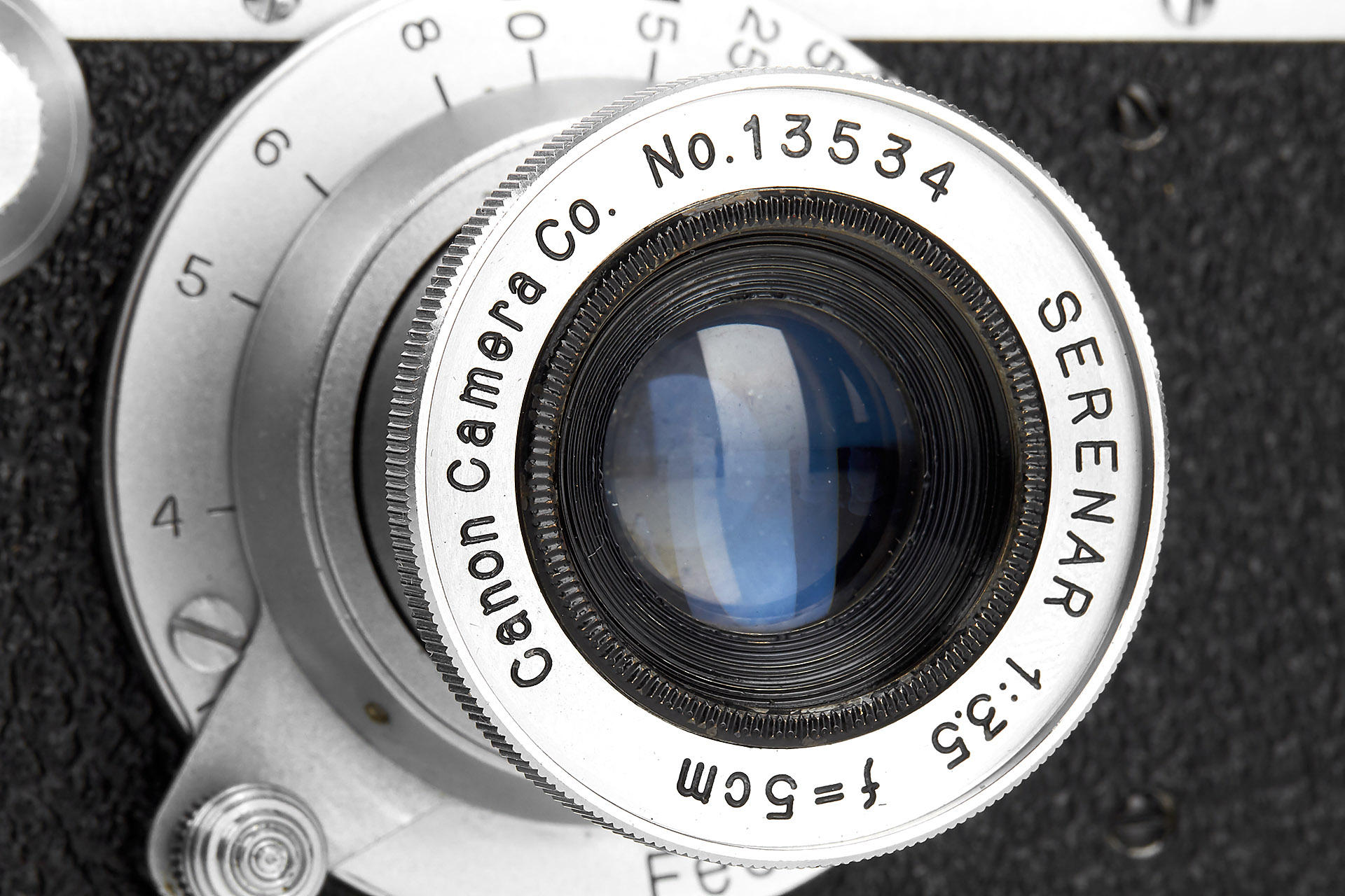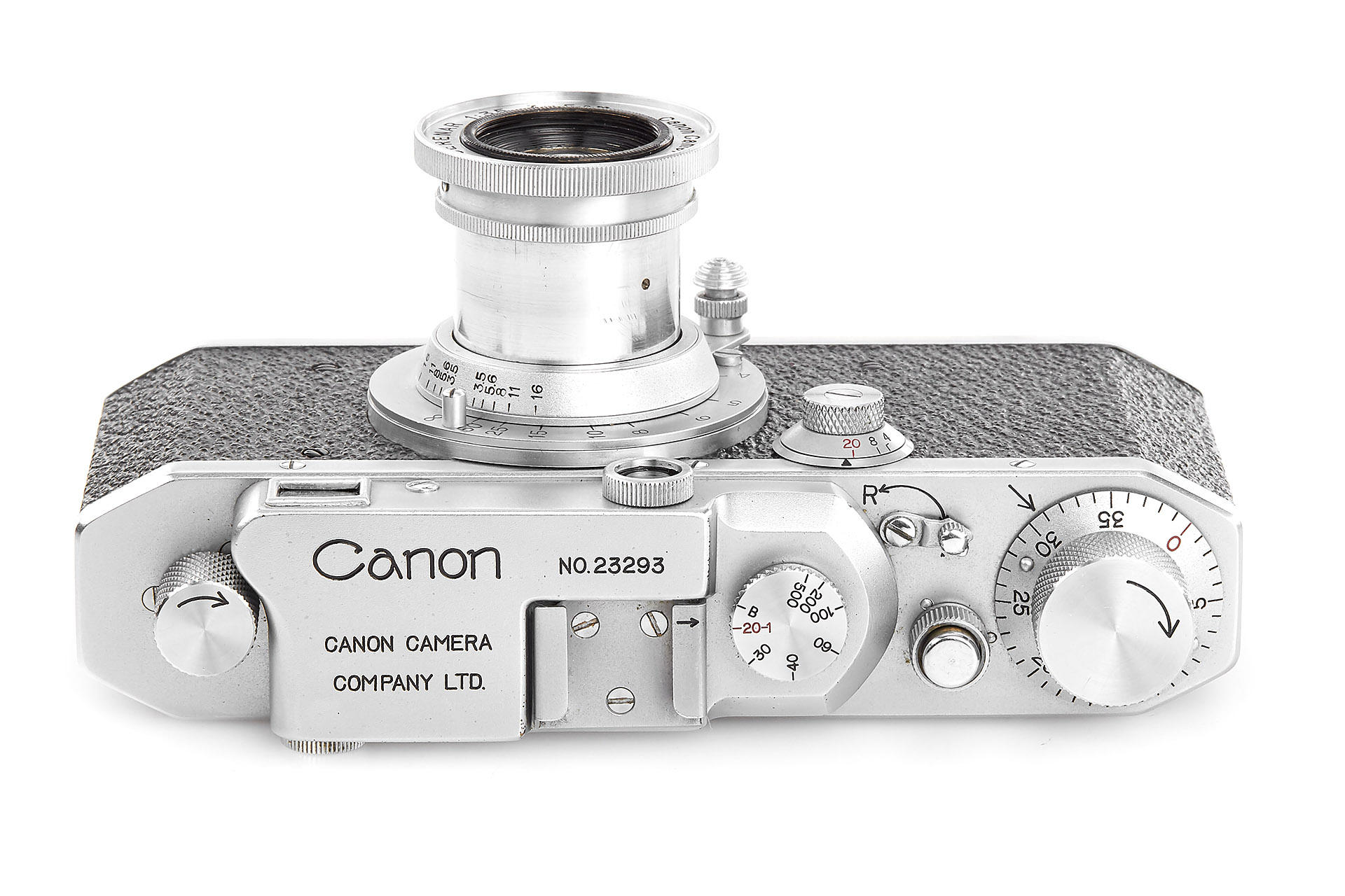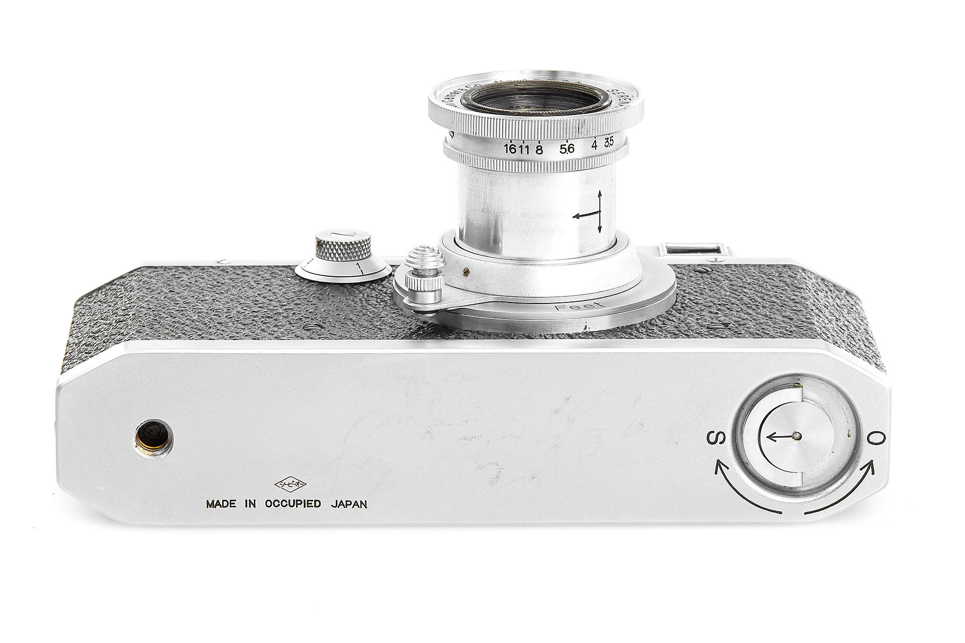 late Canon S-II in near mint condition, base plate engraved 'MADE IN OCCUPIED JAPAN' and marked with CPO symbol (quite rare in Katakana characters), with rare and matching collapsible Serenar 3.5/5cm no.13534, lens cap