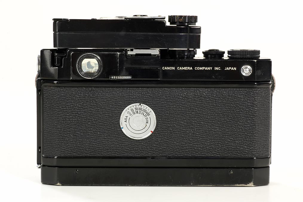 100% original black painted Canon in good working order with rapid wind, black painted exposure meter (working)